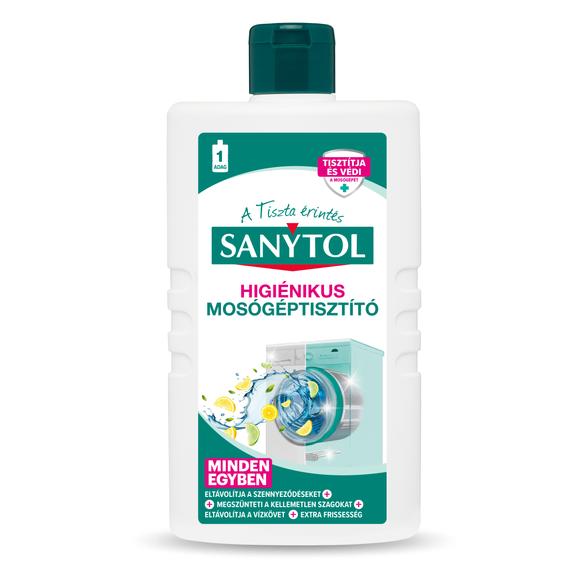 Tudta, hogy minden mosási ciklus után maradványok, szennyeződések és vízkő marad vissza, amelyek károsítják a mosógépet? A Sanytol Higiénikus mosógép tisztítója teljes és hatékony tisztítást biztosít a mosógép belsejében, javítva annak teljesítményét és tartósságát. All in One formulája mélyen tisztítja a mosógépet, eltávolítja a szennyeződéseket, megszünteti a rossz szagokat és feloldja a vízkövet, miközben friss citrom illatot hagy maga után. Csak egy tiszta mosógép garantálja az igazán tiszta és friss mosást.