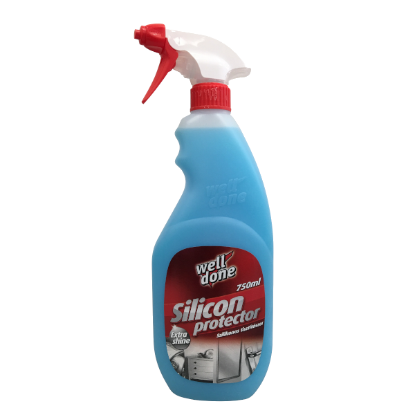 WELL DONE szilikonos tisztító. Védőréteget képezve taszítja a port, zsírt, szennyeződéseket. Alkalmas ablak, tükör, bútor, gumi, autókarosszéria ápolására és tisztítására.