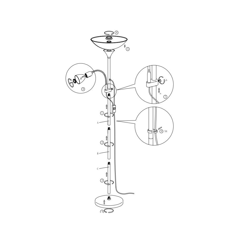 Az állólámpa felső része E27-es foglalattal rendelkezik, mely maximum 60W teljesítményű fényforrással üzemeltethető, az olvasókar E14-es foglalattal, s maximum 18W teljesítményű fényforrással.