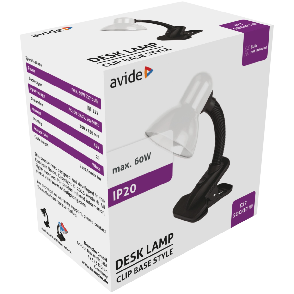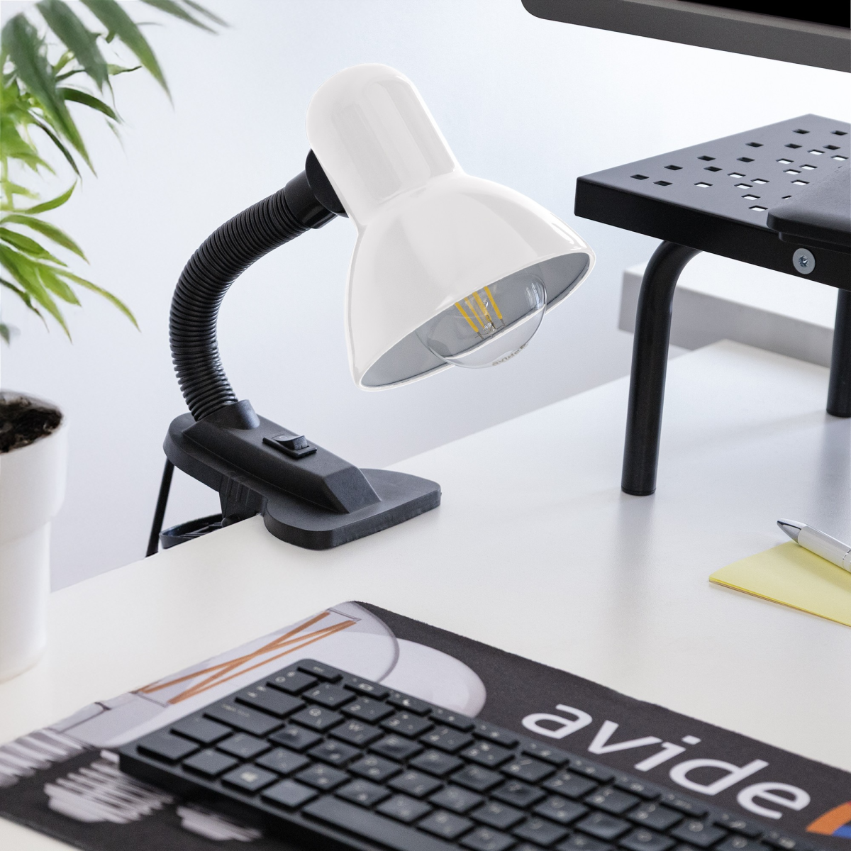 Ez a letisztult formavilágú Avide Basic csíptethető asztali lámpa kiváló választás tanuláshoz, munkához vagy olvasáshoz. Kompakt méretének és erős csíptetőjének köszönhetően rugalmasan rögzíthető íróasztalra, polcra vagy akár ágyvégre is, így kis helyeken is kényelmesen használható.