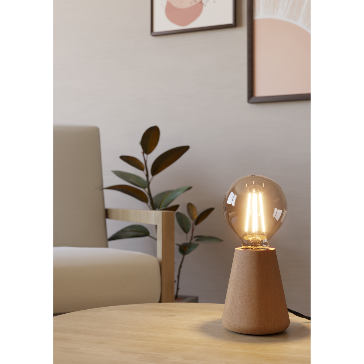 Az EGLO Asby asztali lámpa stílusos fa színben, modern dizájnjával tökéletes kiegészítője lehet bármely munkaterületnek vagy nappalinak. Az E27-es foglalattal rendelkező lámpa 40W-os teljesítményt biztosít, azonban a fényforrás nem tartozék, így igényeid szerint választhatsz hozzá megfelelő izzót. Az IP20-as védettség garantálja, hogy beltéri használatra ideális, míg kompakt 10x8,5 cm-es mérete helytakarékos megoldást kínál.