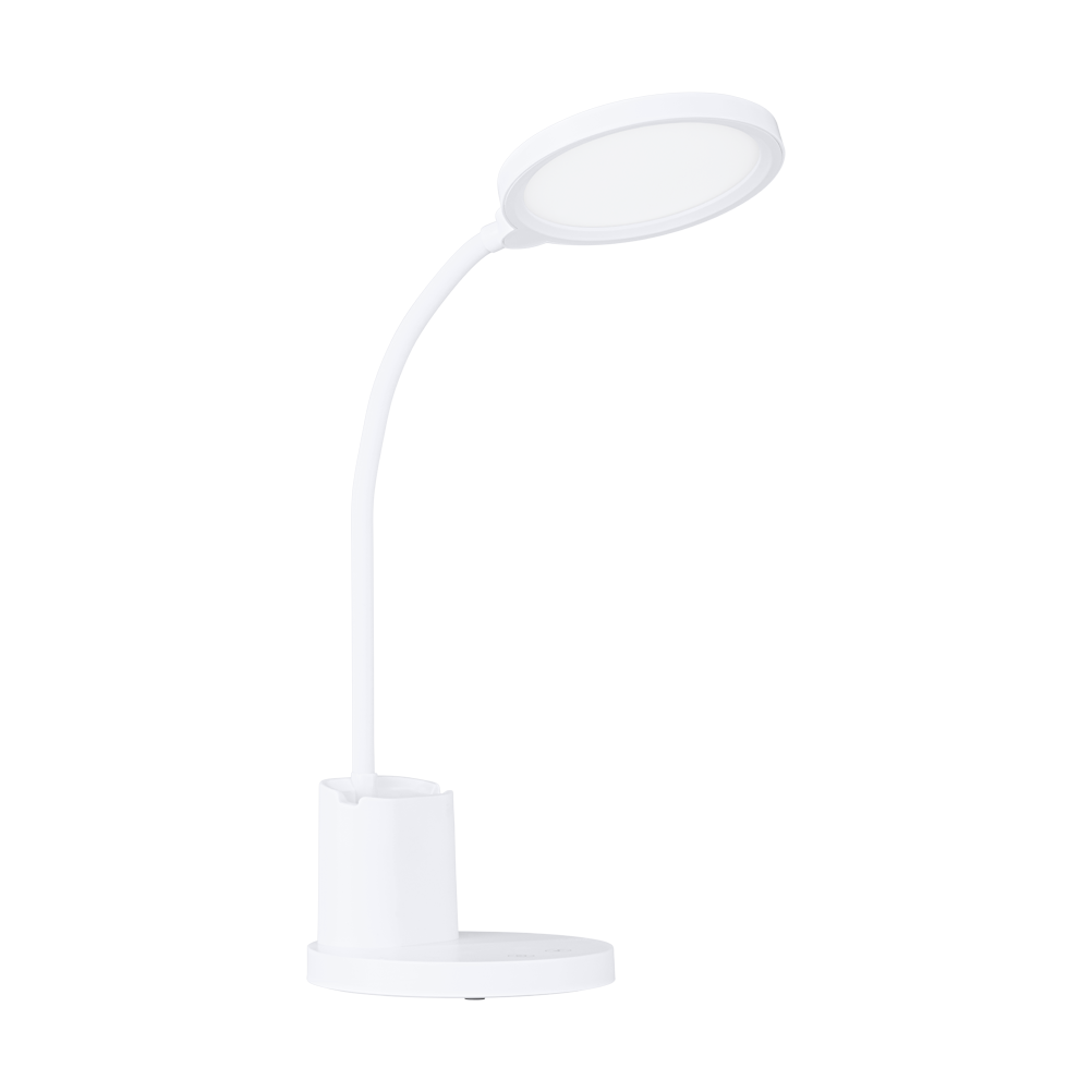 LED íróasztali lámpa fehér színben, USB csatlakozási lehetőséggel; érintőkapcsolóval állítható színhőmérséklet 2700-6500K.