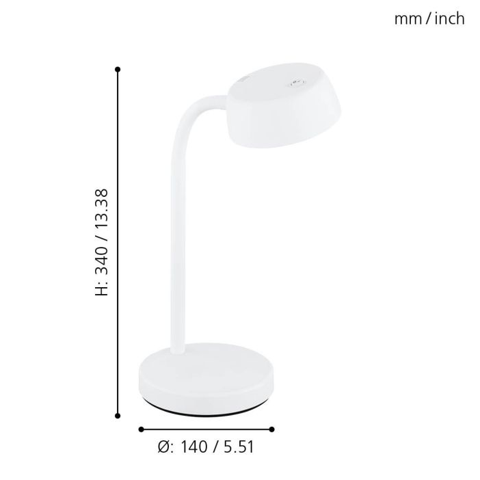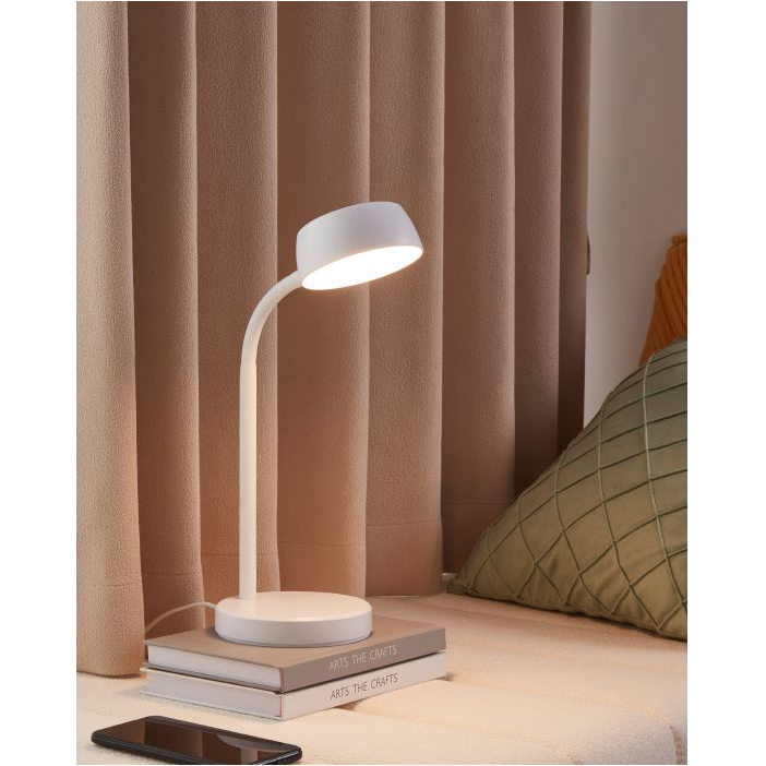 LED-es asztali lámpa, fehér színeben. A dolgozószobába vagy a gyerekszobába egyaránt ideális választás.