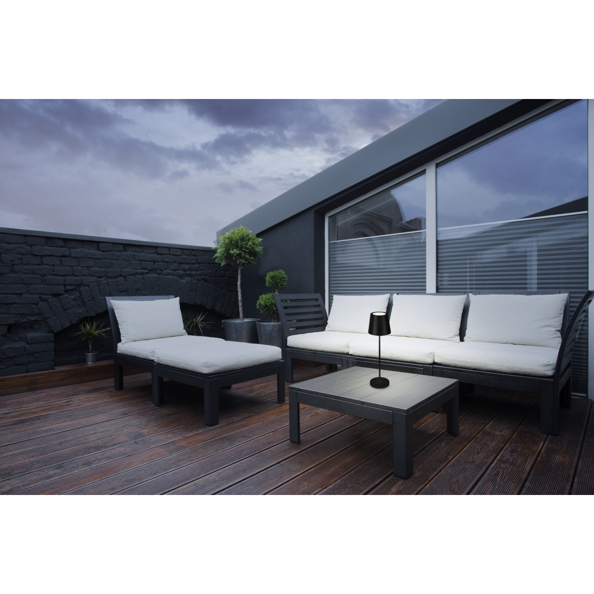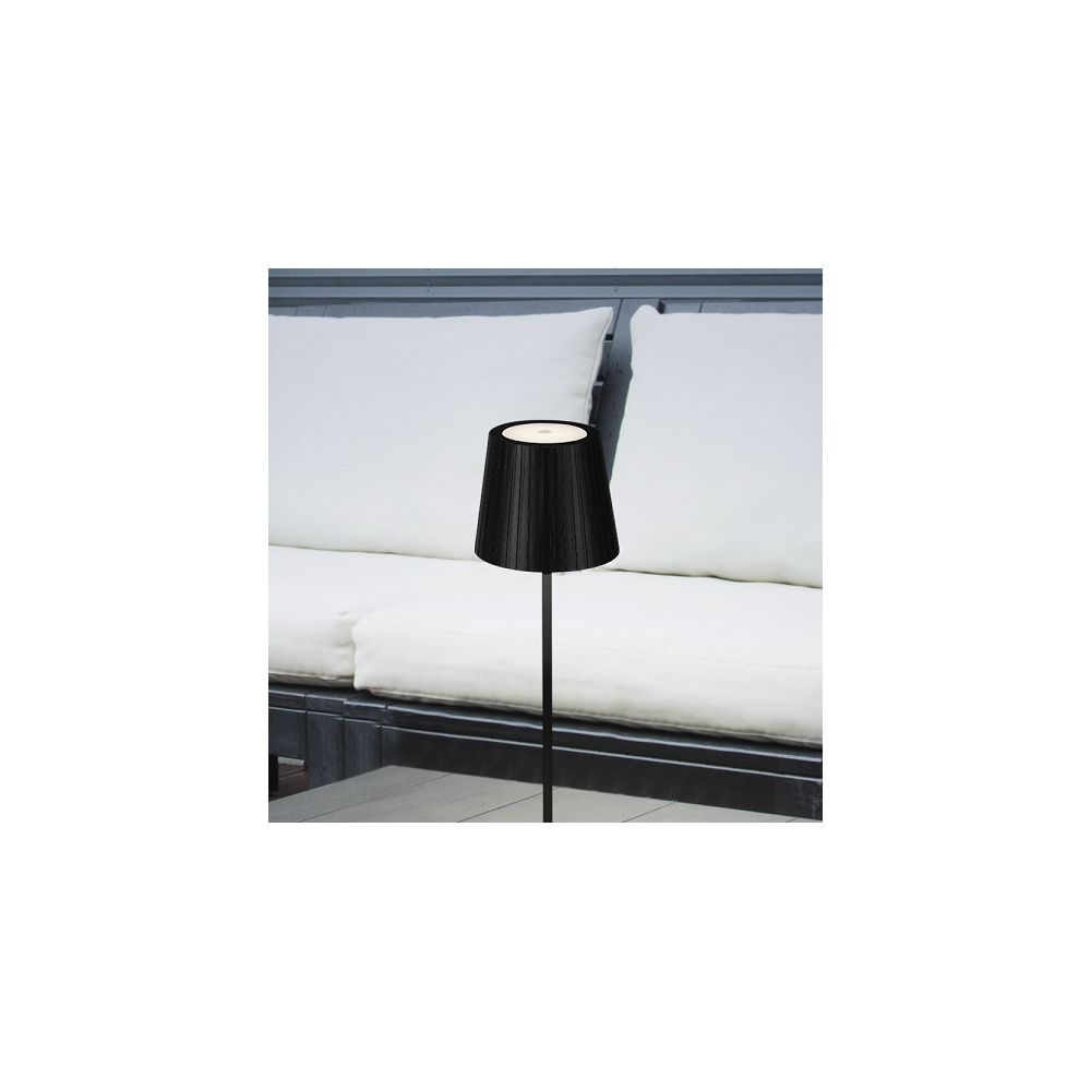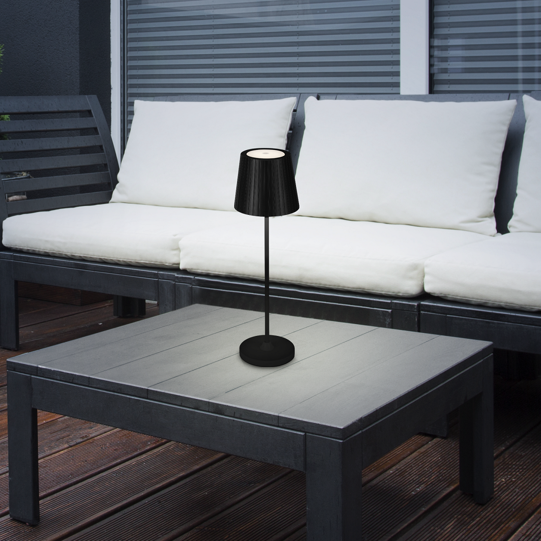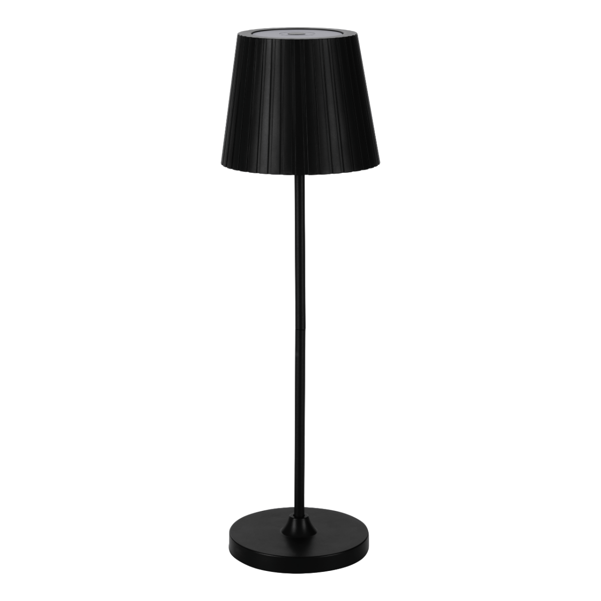 Fekete színű, LED-es asztali lámpa, 300 lumen fényerővel. Beépített érintőkapcsolóval, amely lehetővé teszi a fény kényelmes vezérlését. Három lépésben szabályozható színhőmérséklet (2400K - 3000K - 4000K). USB csatlakozóval.