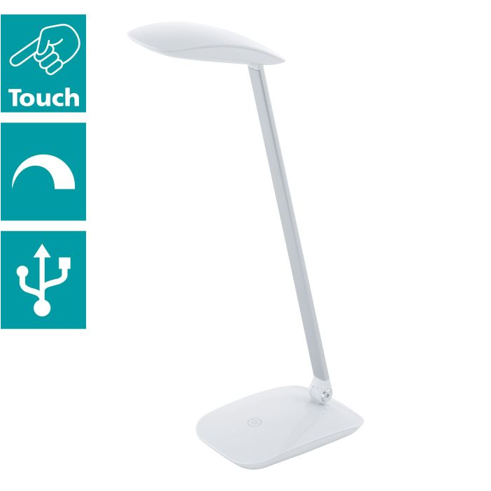Cajero LED asztali lámpa, fehér színben, mely dimmelős érintőkapcsolós és dönthető fejjel rendelkezik, minden íróasztal kiváló tartozéka lehet.