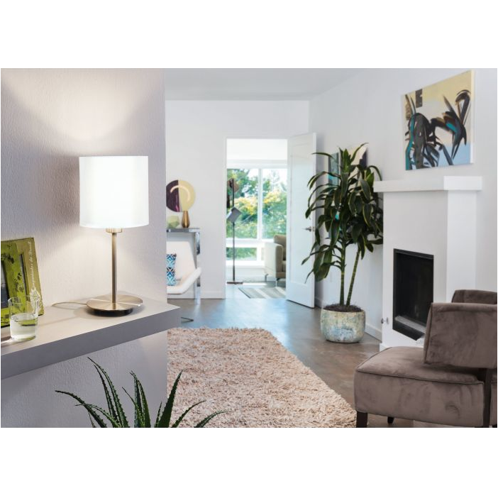 Asztali lámpa fehér színben, mely modern és egyszerű kialakításával önmagáért beszél, hiszen csodálatosan illeszkedik a különböző alkalmazási területekhez.