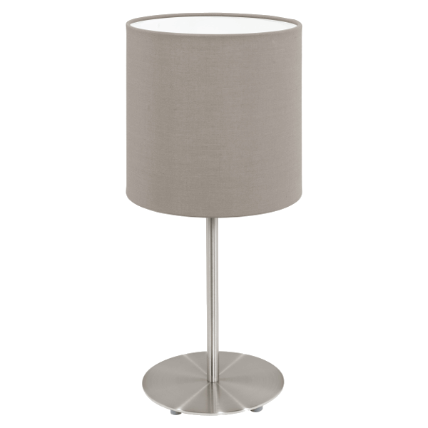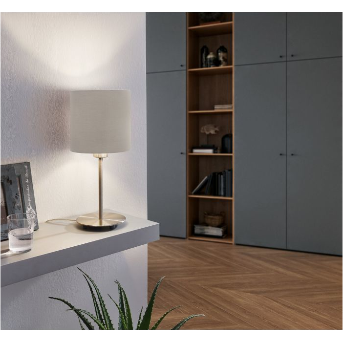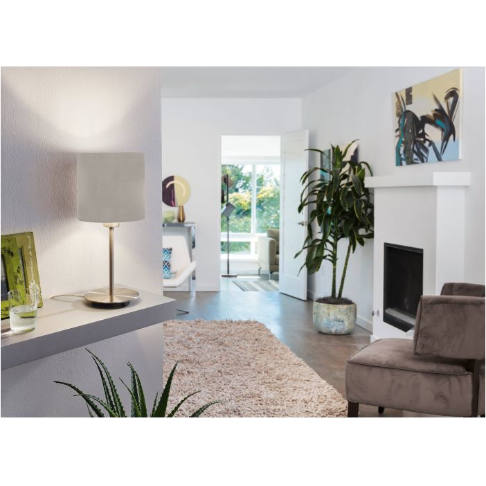 Asztali lámpa szürkésbarna színben, mely modern és egyszerű kialakításával önmagáért beszél, hiszen csodálatosan illeszkedik a különböző alkalmazási területekhez.