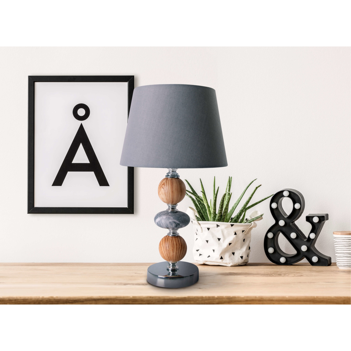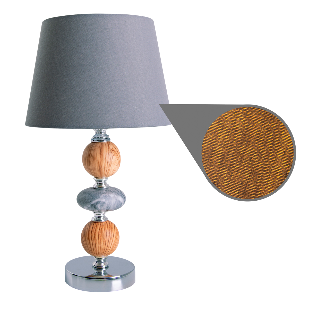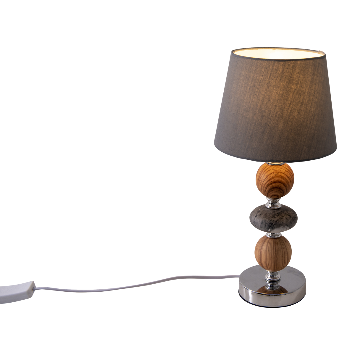 A talapzat anyaga kerámia. A termék magassága 36 cm, átmérője 20 cm. A lámpa E14-es foglalattal és 160 cm hosszú billenő kapcsolós kábellel rendelkezik, maximum 40W teljesítményű fényforrással üzemeltethető. Ez az elegáns, kerámiából készült asztali lámpa kellemes hangulatot teremt a szobában. A szürke színű búra lágy fényt nyújt, míg a talapzata finoman díszített. A nappali vagy a hálószoba számára egyaránt ideális választás ez a dekoratív darab.