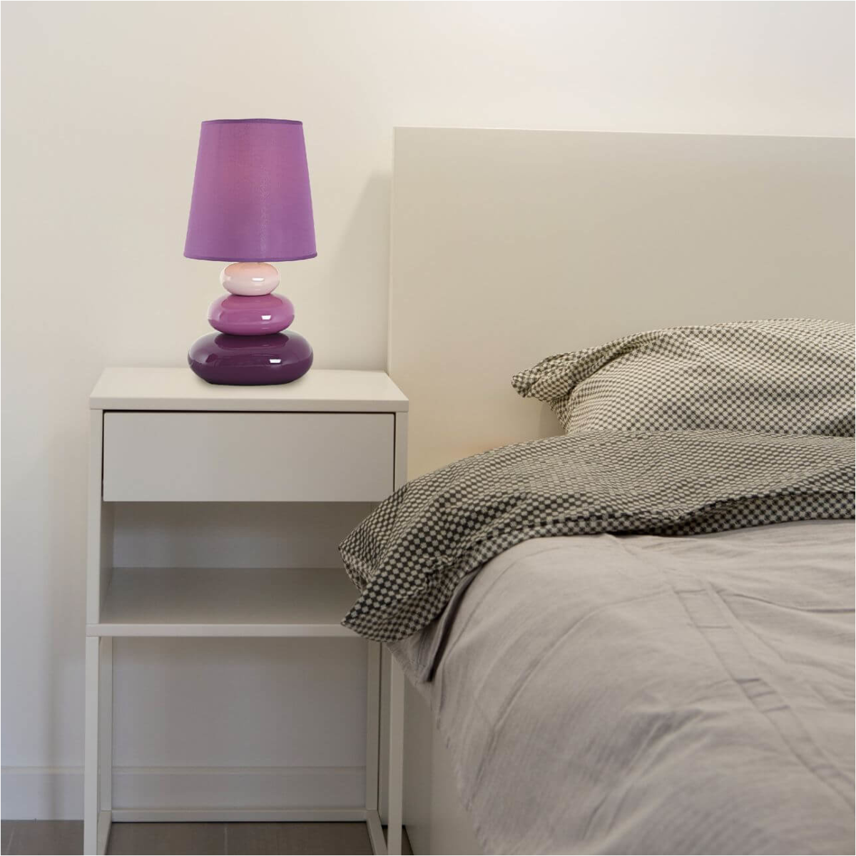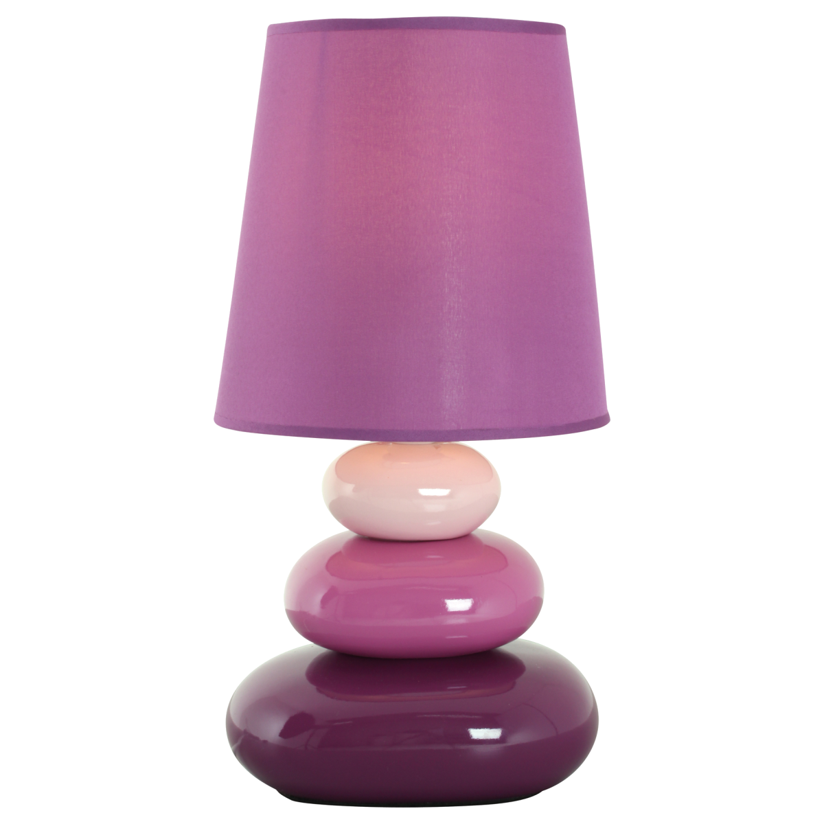 Lila színű asztali lámpa E14 foglalattal, mely maximum 40W teljesítményű fényforrással üzemeltethető.