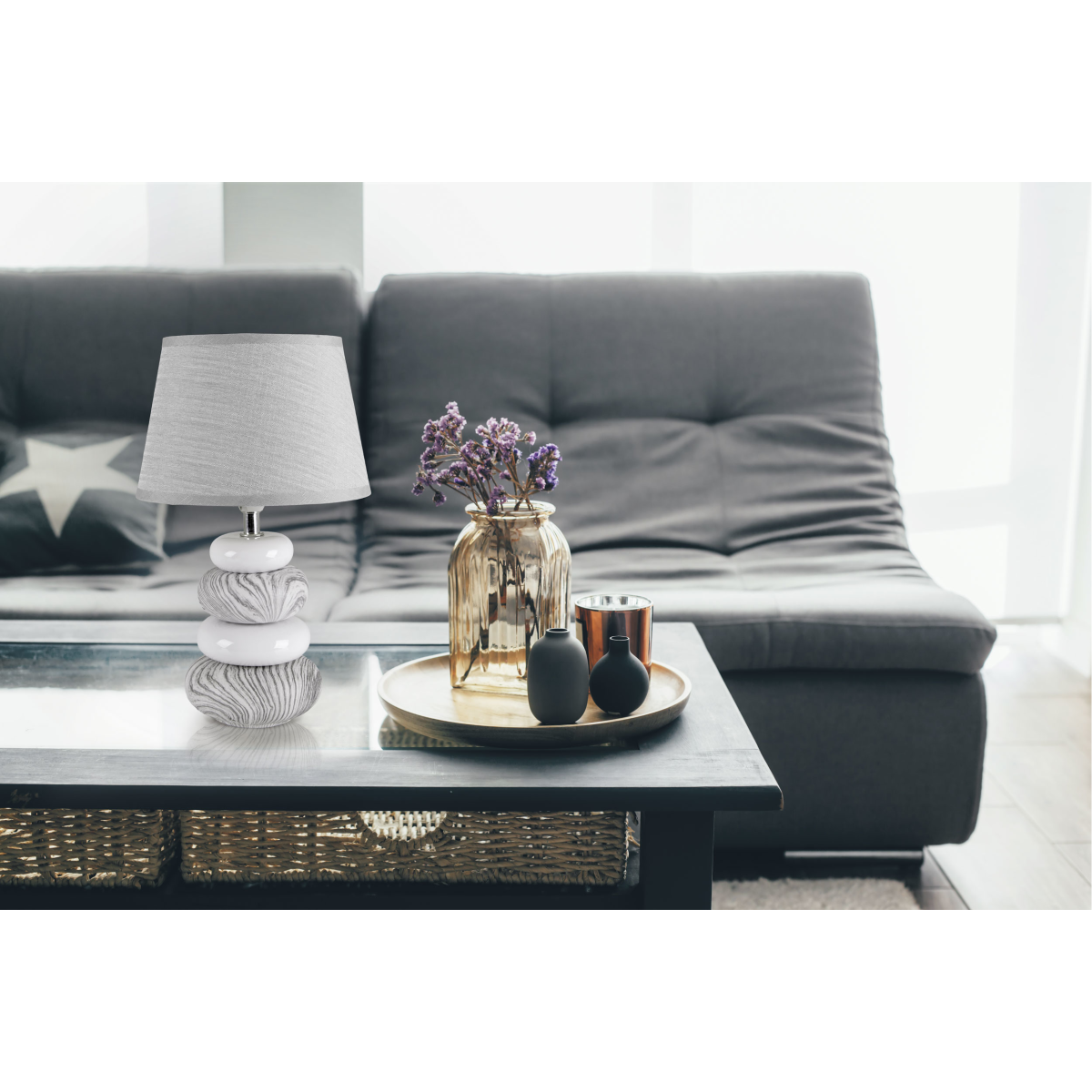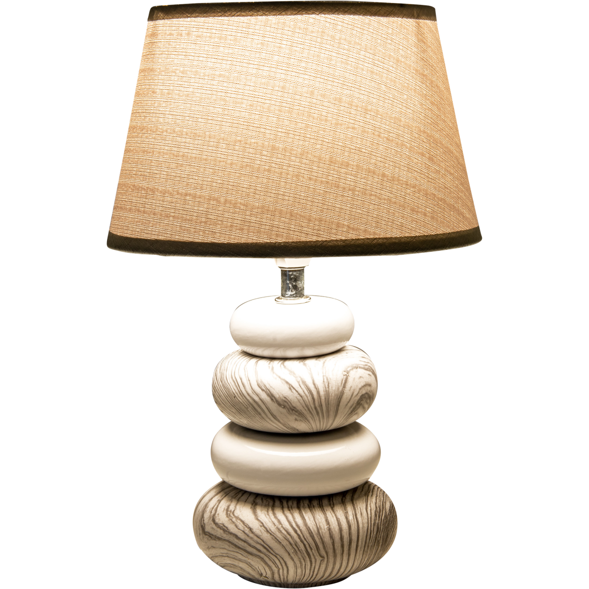 A Stoney asztali lámpa különleges darab. Mind színeiben, mind pattintott kő hatású kerámiából készült talapzatával ízléses és időtlen kiegészítője a lakótérnek. A lámpa a nappali vagy a hálószoba fénypontja lehet . A kerámia lámpa autentikus fehér és barna árnyalatú folyami kő színű kerámia követ formázó testtel és beige lámpabúrával rendelkezik. Mérete: 31 cm magas, átmérője 16 cm. A termék E14-es foglalattal és 130 cm-es billenő kapcsolós kábellel került gyártásra.