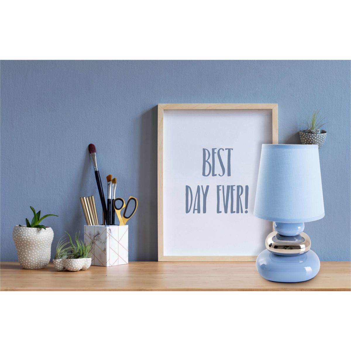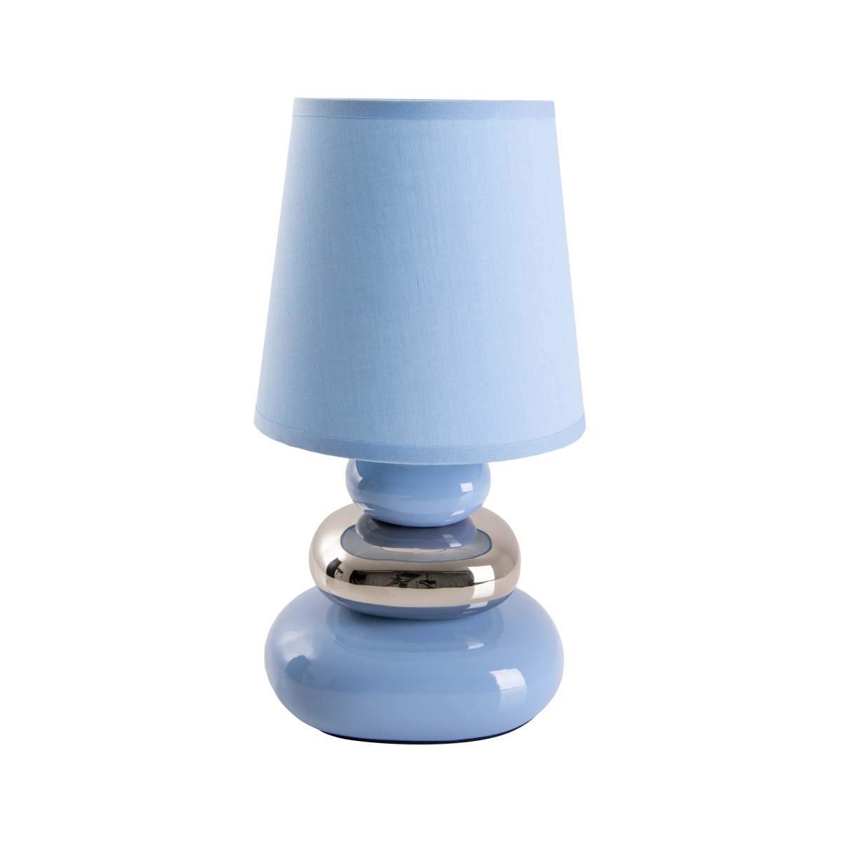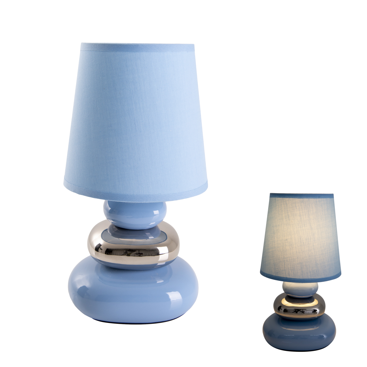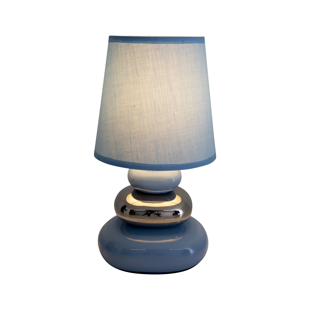 A Stoney asztali lámpa különleges darab, mind színeiben, mind pattintott kő hatású kerámiából készült talapzatával ízléses és időtlen kiegészítője a lakótérnek. A lámpa a nappali vagy hálószoba fénypontja lehet. A kerámia lámpa kék-króm színű kerámia követ formázó testtel és babakék lámpabúrával rendelkezik. Mérete: 31 cm, átmérője 16 cm. A termék E14-es foglalattal és 130cm-es billenő kapcsolós kábellel került gyártásra, mely maximum 40W teljesítményű fényforrással üzemeltethető.