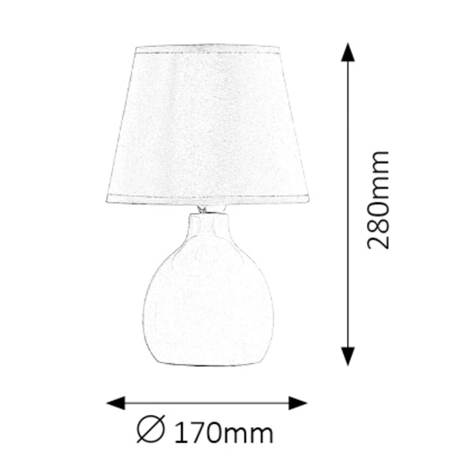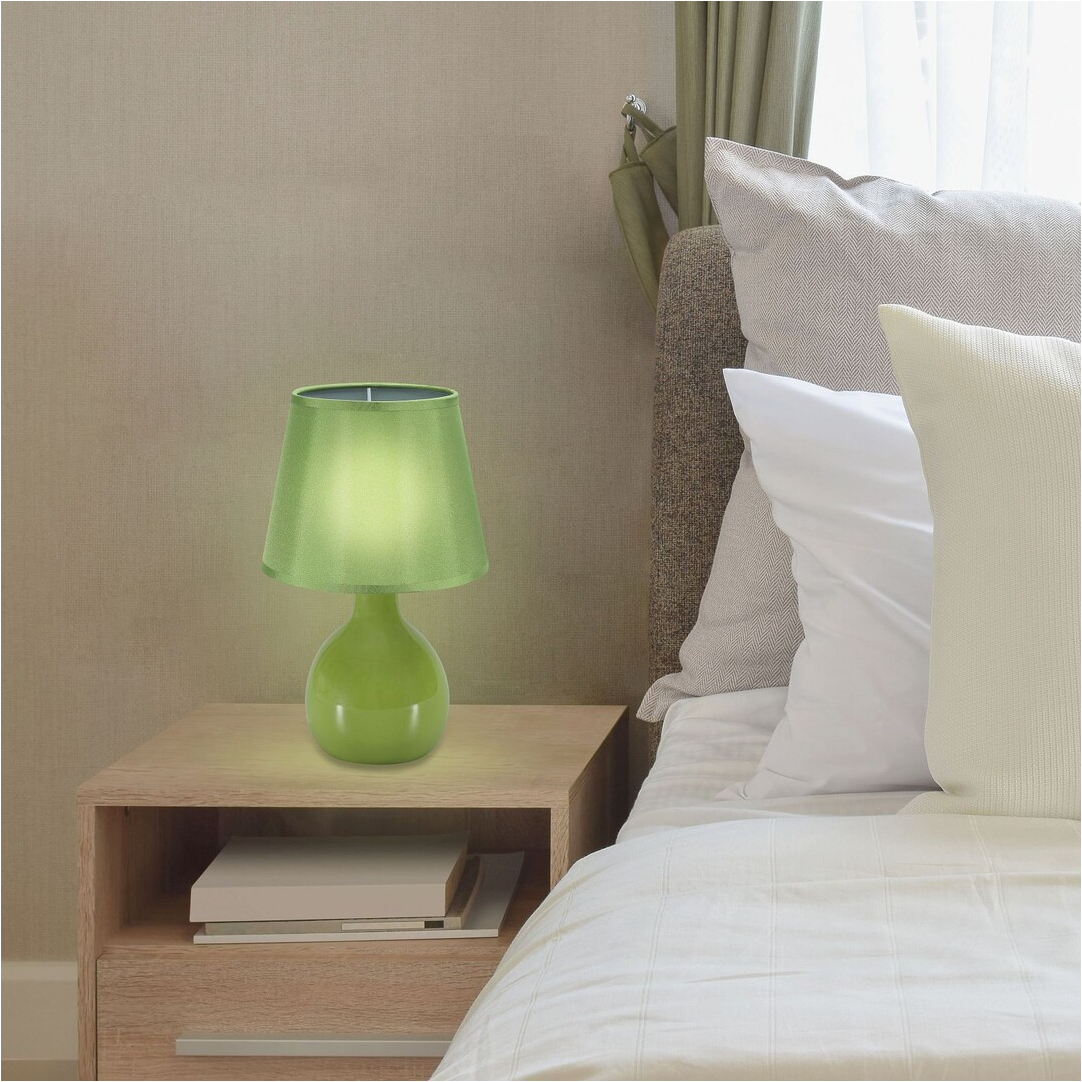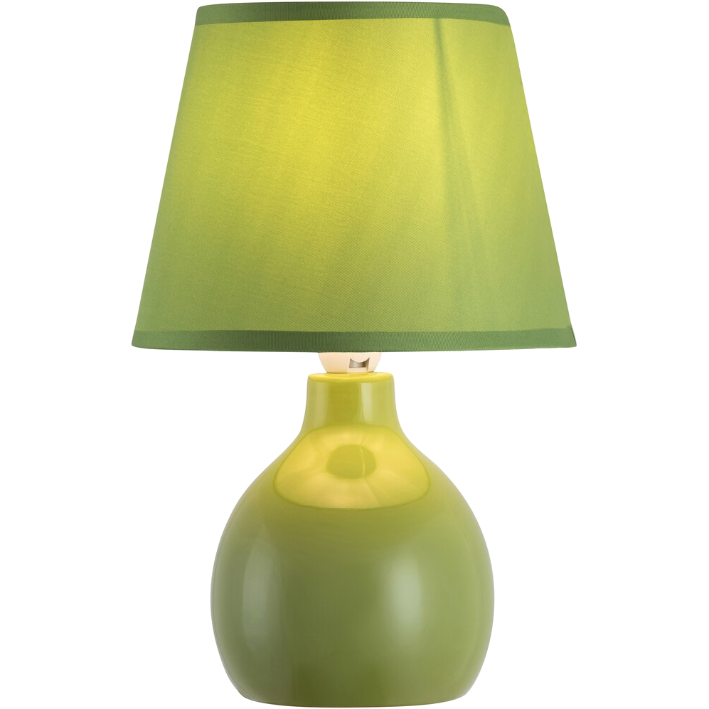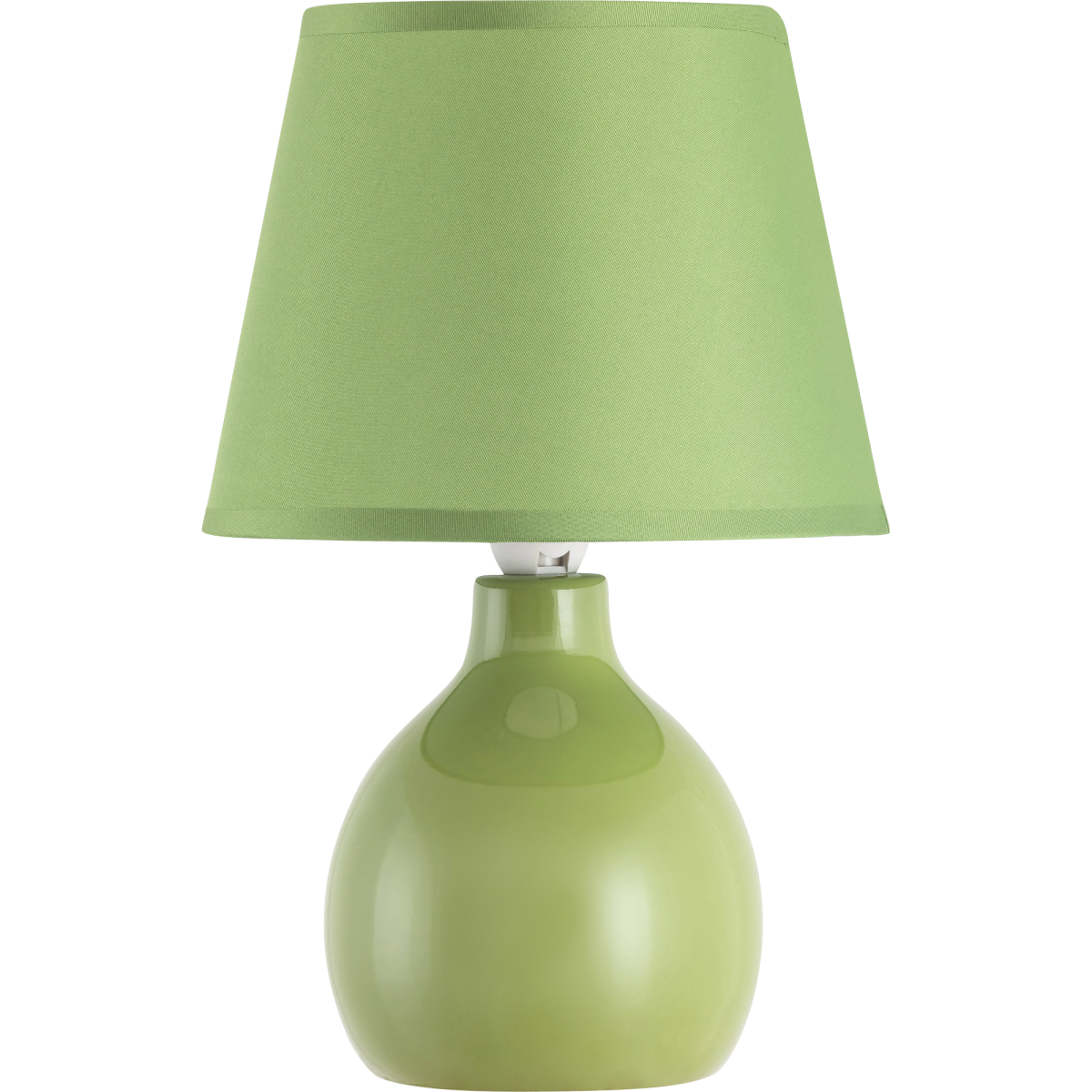 Időtlen megjelenésű éjjeli lámpa 1 db foglalattal. 28 cm magas, 17 cm átmérőjű lámpatest zöld színű kerámia lámpatesttel és textil lámpaernyővel, vezetékes kapcsolóval és IP20-as védettséggel. Az asztali lámpa E14-es foglalatkialakítású, maximum 40W teljesítményű izzóval használható.