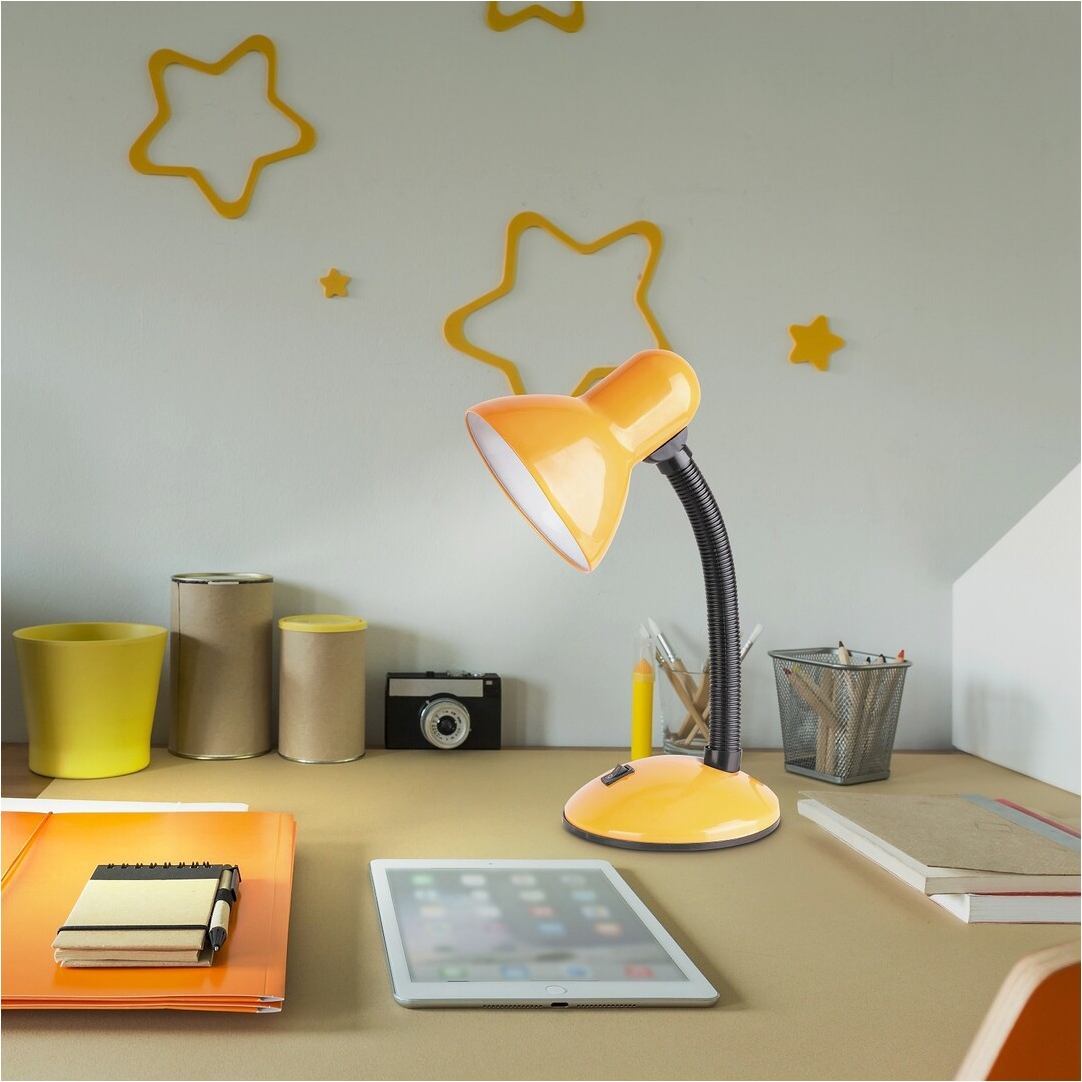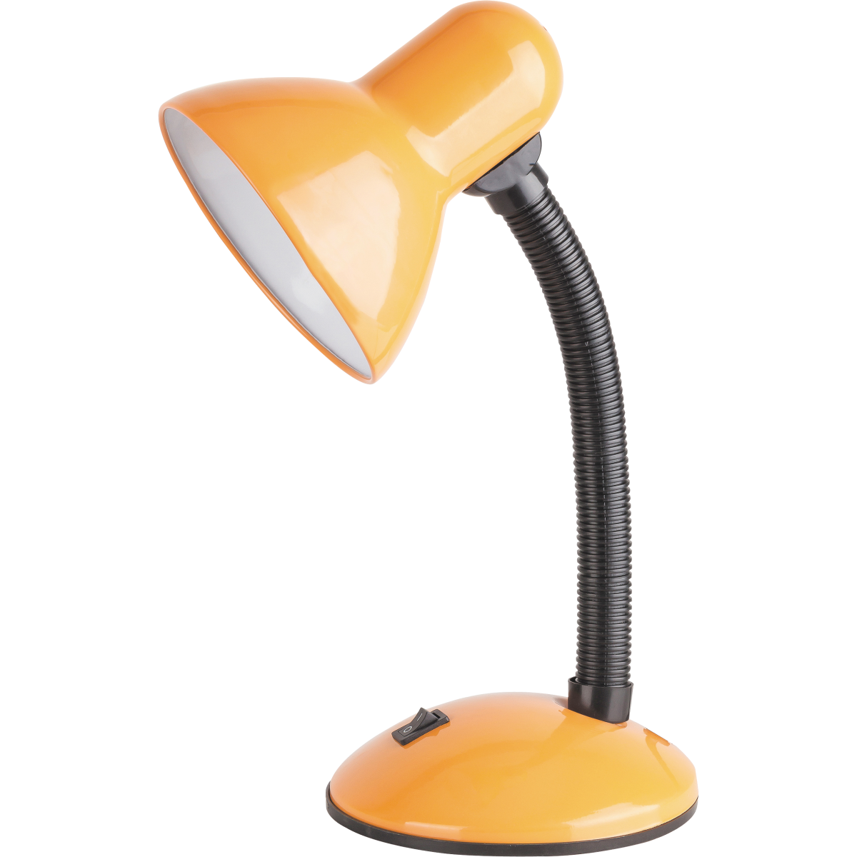 Időtlen megjelenésű asztali lámpa 1 db foglalattal. 23 cm széles, 34,5 cm magas, narancssárga színű műanyag lámpatest és pozícionálható lámpabúra. A lámpatest E27-es foglalatú, maximum 40W teljesítményű fényforrással használható.