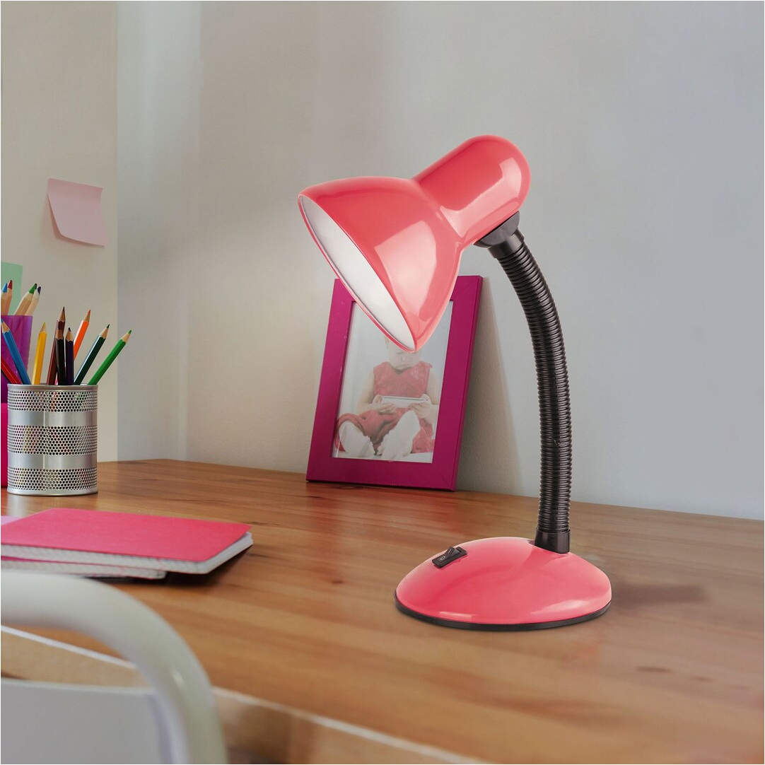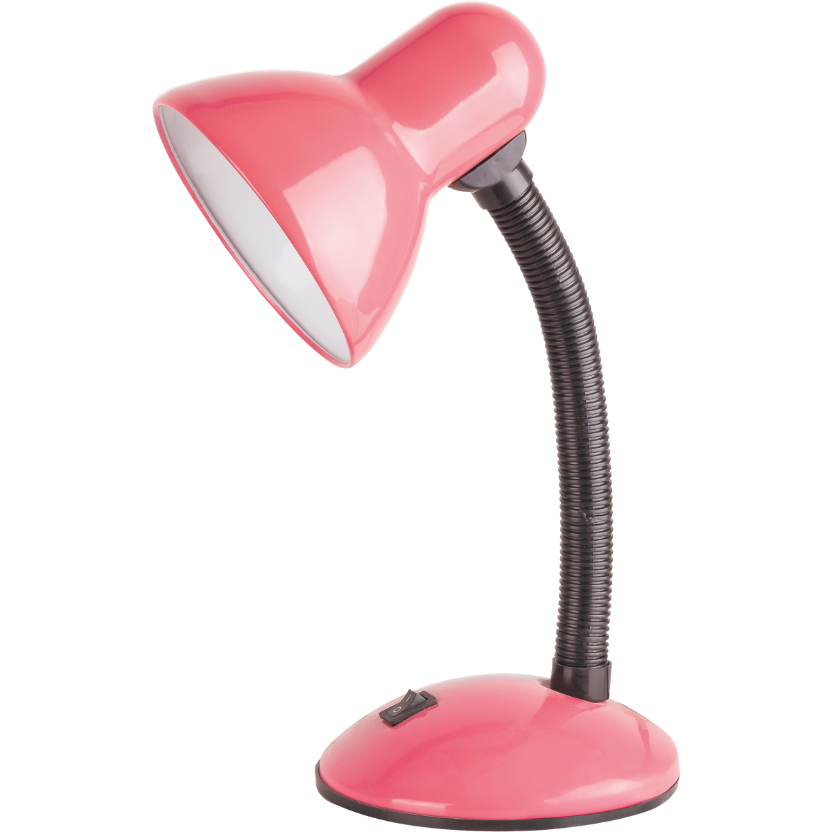 Időtlen megjelenésű asztali lámpa 1 db foglalattal. 23 cm széles, 34,5 cm magas, rózsaszín műanyag lámpatest és pozícionálható lámpabúra. A lámpatest E27-es foglalatú, maximum 40W teljesítményű fényforrással használható.