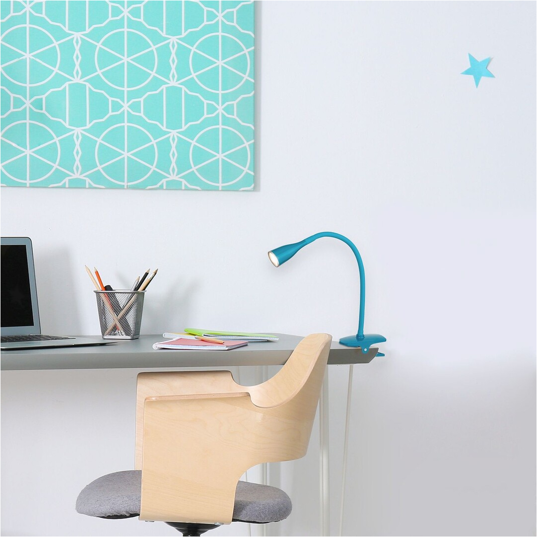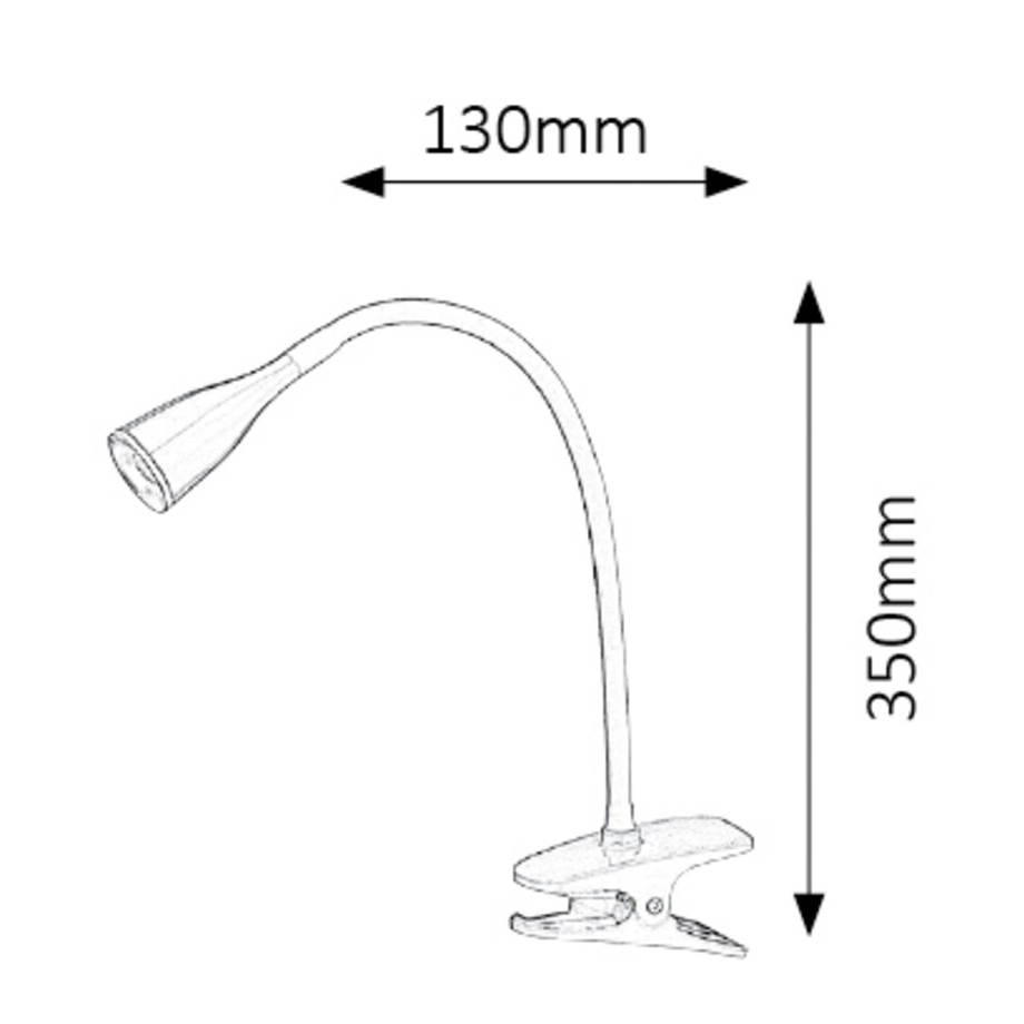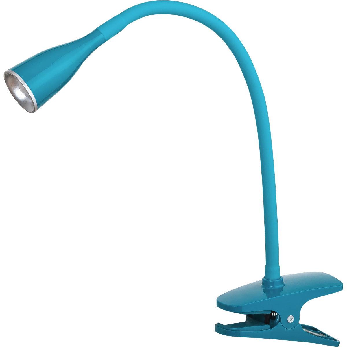 Modern megjelenésű csíptethető asztali lámpa beépített energiatakarékos LED fényforrással. 35 cm magas, kék színű műanyag szerkezet pozícionálható fejjel, kapcsolóval. A lámpatestbe beépített LED fényforrás 4,5W teljesítmény mellett 330 lumenes fényerőt, valamint 3000 Kelvines, melegfehér színű fényt biztosít.