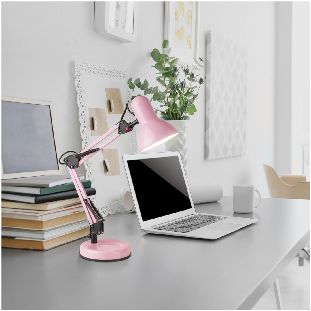 Praktikus asztali megvilágítást biztosító, időtlen megjelenésű asztali lámpa állítható karral és fejjel, 49 cm-es magassággal, rózsaszín színben. Fém alapanyag, tartós kivitel. A lámpatest E27-es foglalatú, maximum 60W teljesítményű fényforrással használható.