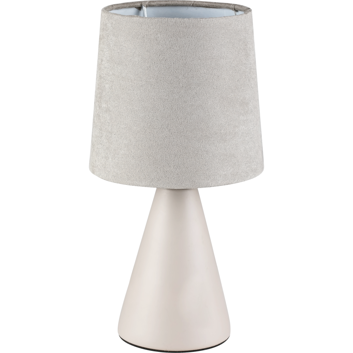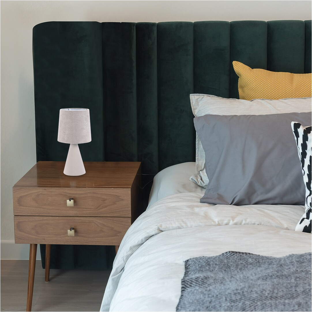 A kisméretű, megjelenésében melegséget sugárzó Nalani éjjeli lámpa helyet kaphat hálószobánkban, az éjjeliszekrényen vagy a nappaliban, egy alacsonyabb asztalon. A kerámiából készült, bézs színű lámpatestet ugyanilyen színű, bársonyos textil búra egészíti ki. A vastag búra éppen csak annyi fényt enged kiszűrődni a lámpa belsejéből, amennyi elengedhetetlen, ha éjszakai felébredésünk alkalmával szükségünk lenne egy kis világításra. A Nalani egy darab, legfeljebb 40 W teljesítményű fényforrással használható, a foglalat típusa E14. Választhatunk hozzá meleg vagy természetes fehér fényű fényforrást. Az éjjeli lámpa vezetékes kapcsolóval működtethető, a vezeték színe fehér. A Nalani magassága 250 mm, a búra átmérője 130 mm.