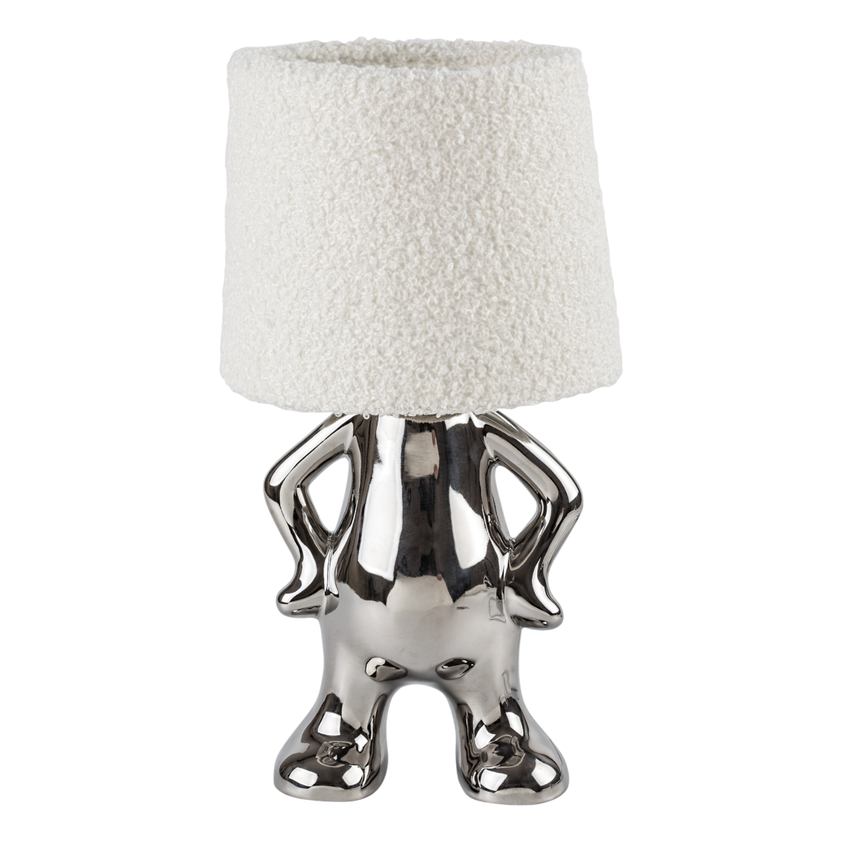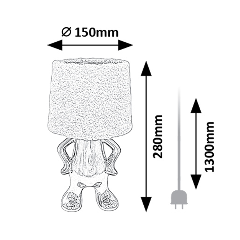 A Rábalux Smurfy asztali lámpa vidám és egyedi megjelenésével könnyedén feldobja a nappalit vagy a hálószobát. A króm színű, kerámiából készült törpe alakú lámpatest különleges karaktert visz a térbe, miközben a krémszínű, bolyhos textilbúra kellemes, szórt fényt biztosít. A 28 cm magas dekorlámpa D15 cm átmérőjű, és E14-es foglalattal rendelkezik, legfeljebb 40 W-os fényforrás használatával.