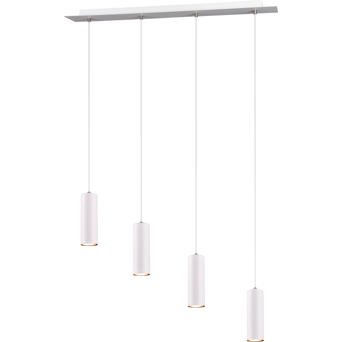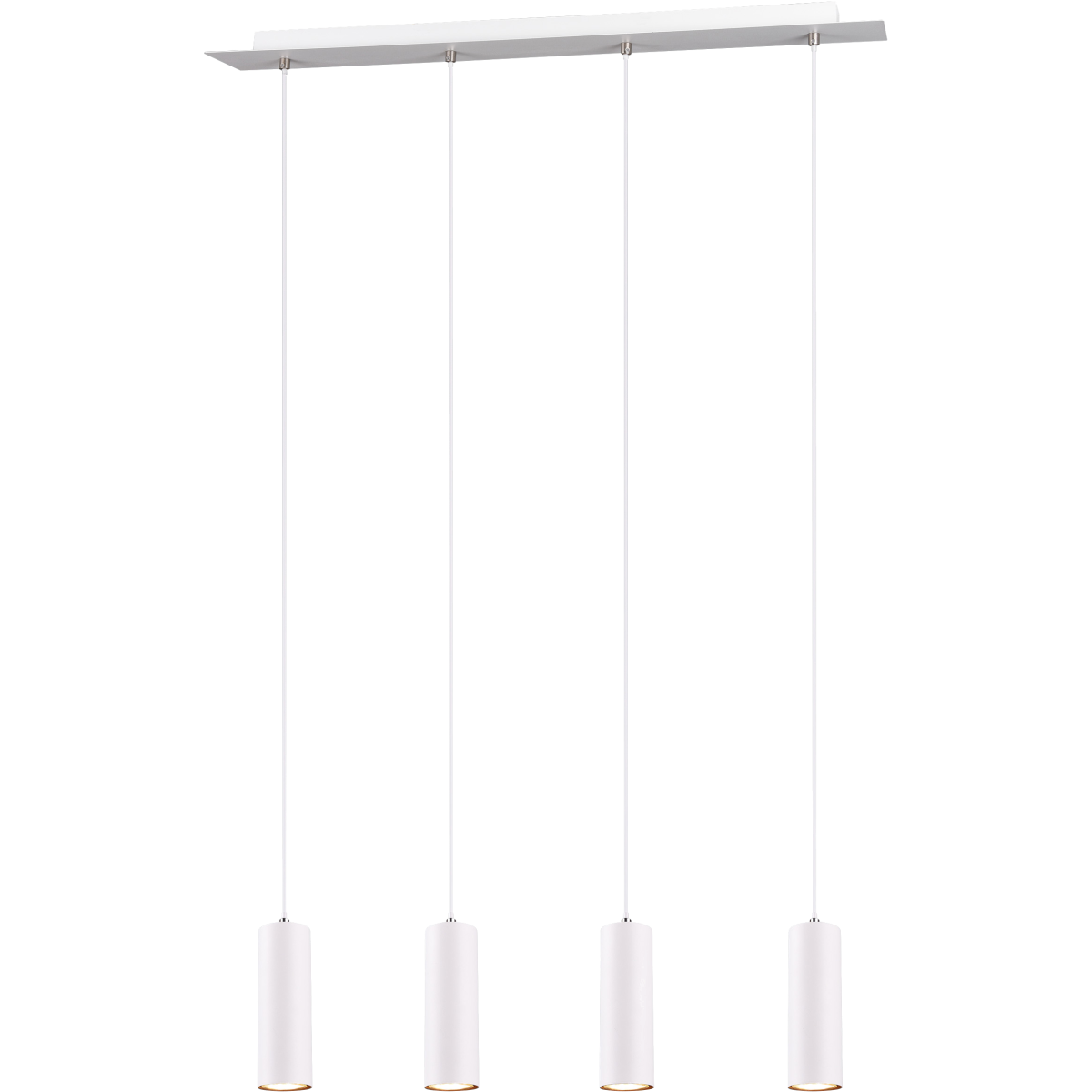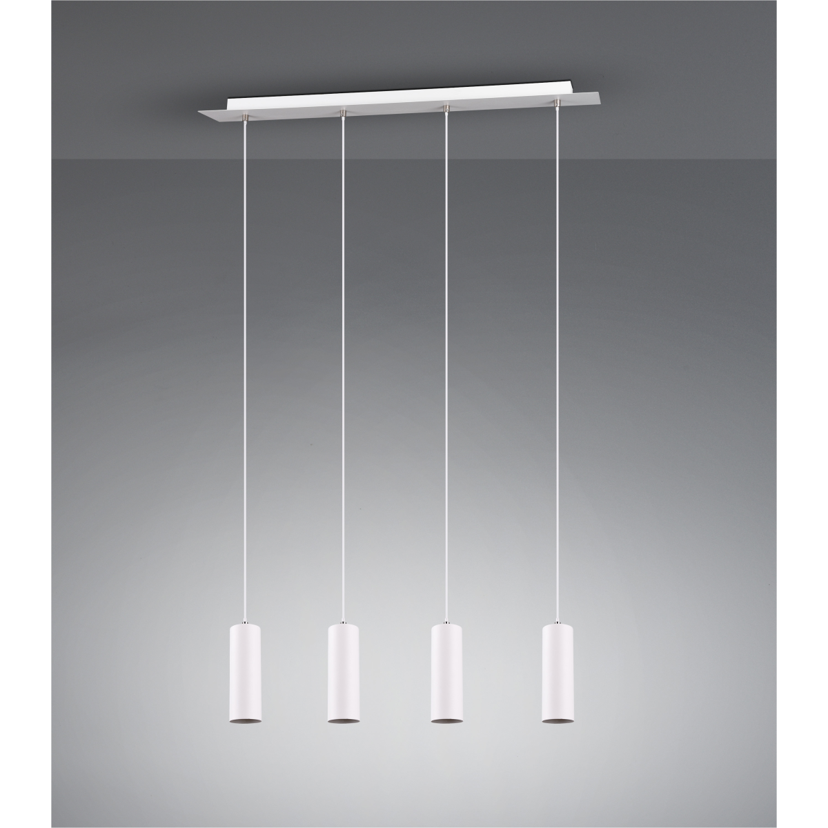 Modern mennyezeti lámpa, 4 darab GU10-es foglalattal, mely max, 4x35W teljesítményű fényforrással üzemeltethető. A termék izzót nem tartalmaz, állítható magasságú.