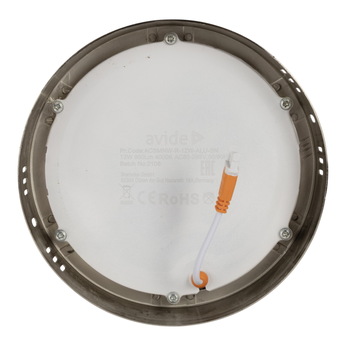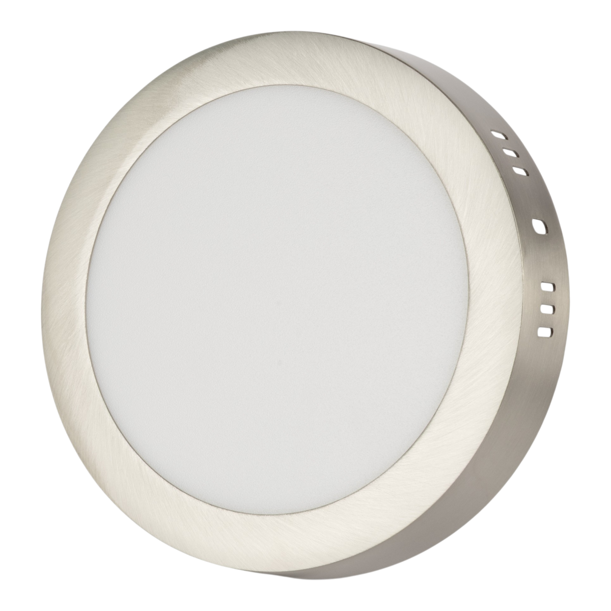 Modern, letisztult megjelenésű, kerek LED-lámpa, amely otthonokban és irodai terekben is jól használható. A 12 W teljesítmény kb. 950 lumen fényáramot ad; a természetes fehér (4000 K) fény kényelmes, szemkímélő érzetet nyújt. A gyártói adat szerint akár 25 000 órás élettartamra tervezett. Szatén nikkel hatású kerettel.