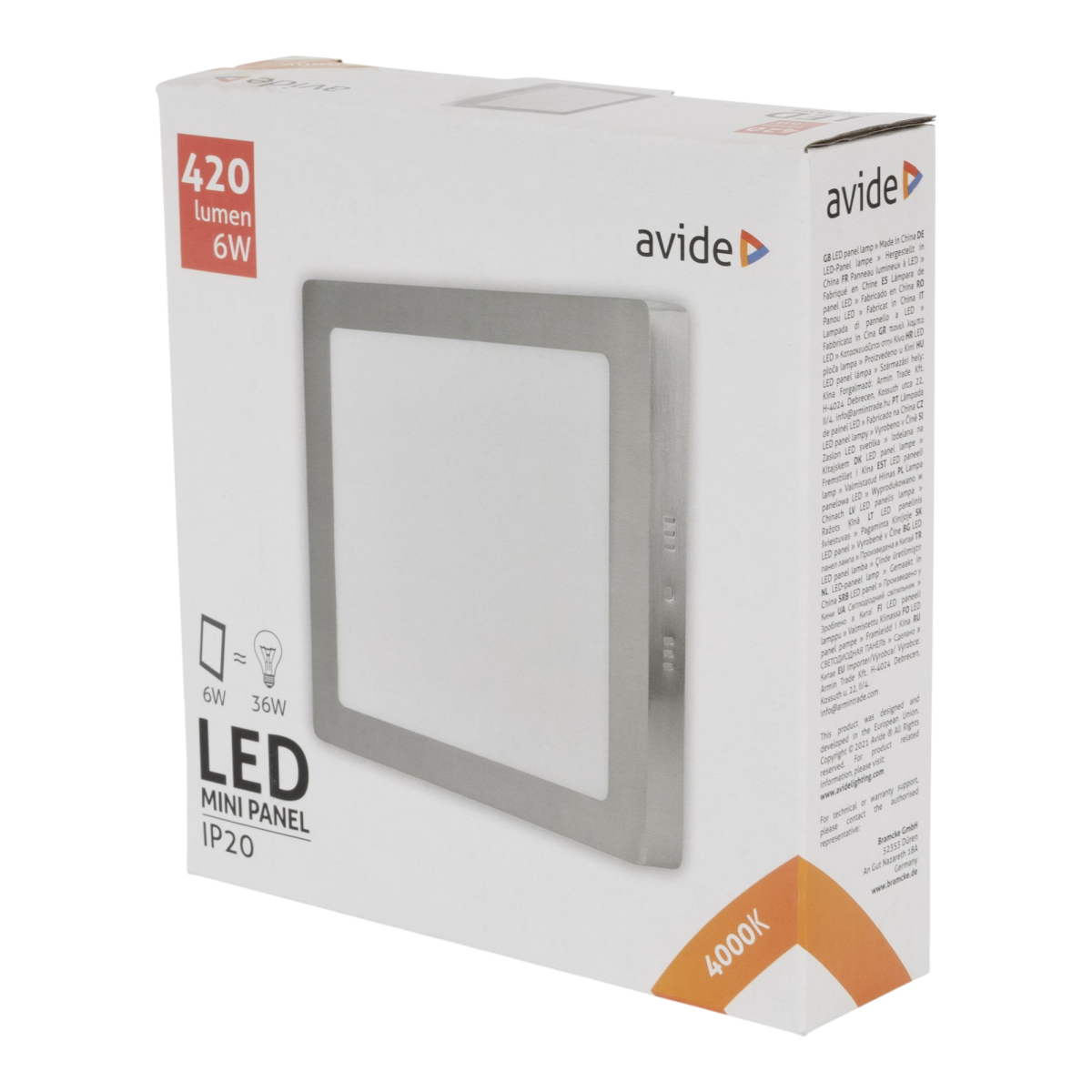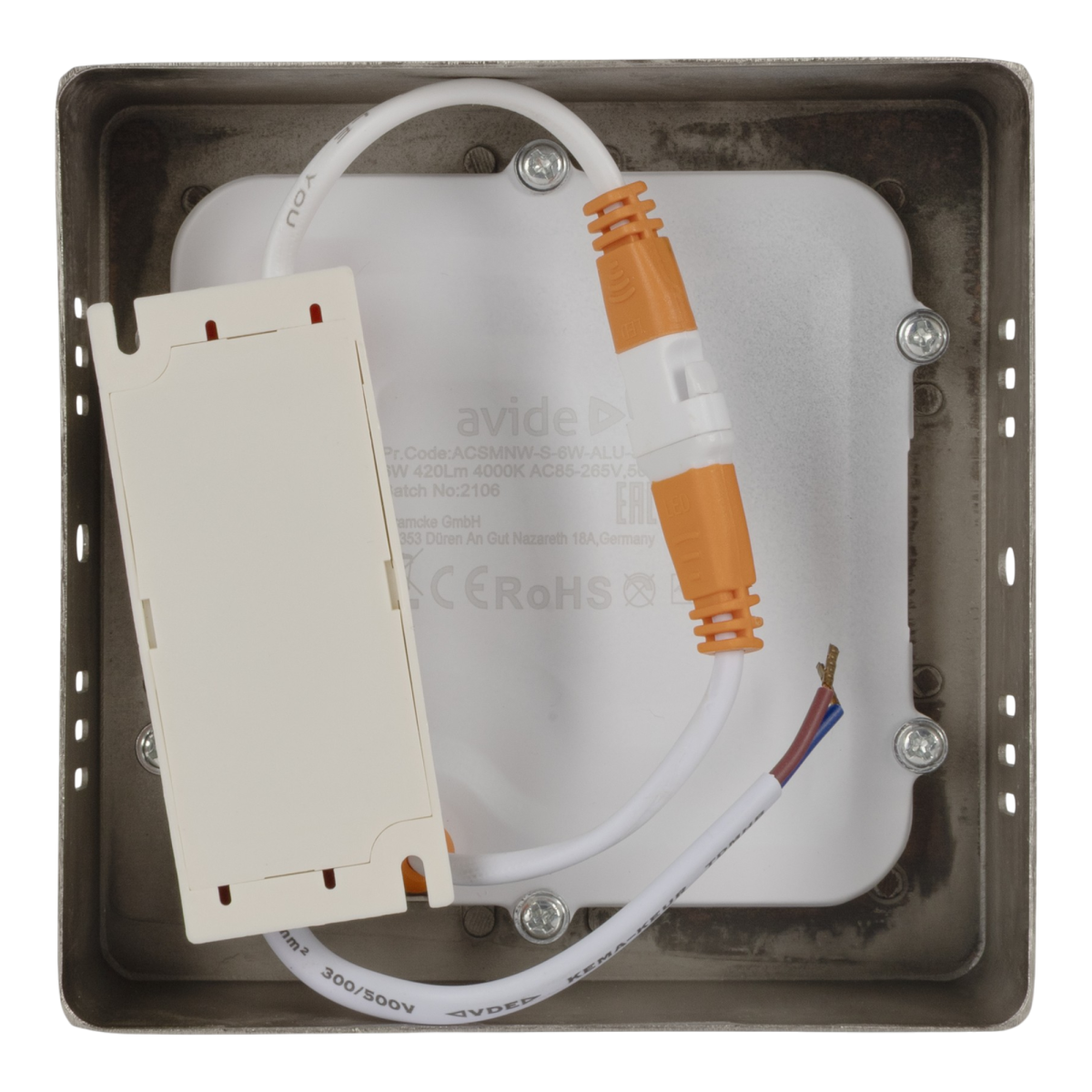 Avide LED mennyezeti lámpa 6W 420lm NW 4000K négyzetes szatén