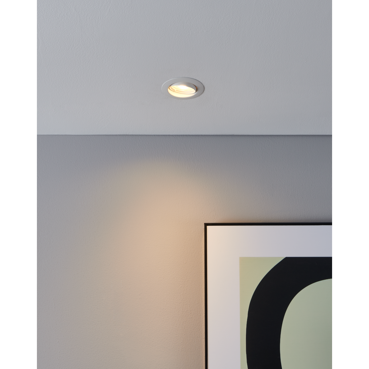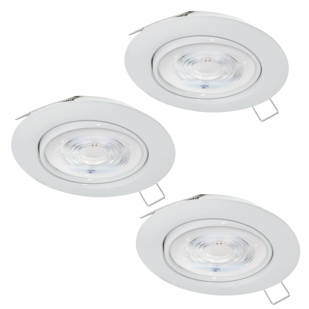 Az EGLO Favazzina LED beépíthető szpot egy modern világítástechnikai megoldás, amely 3 db 4W-os GU10 LED fényforrást tartalmaz, mindegyik 400 lumen fényerővel. A fényforrás cserélhető és tartozék, a meleg fehér 2700K színhőmérséklet kellemes hangulatot biztosít a helyiségben. Az IP20 védettségnek köszönhetően ideális belső terekbe, és 8,8 cm-es átmérőjével könnyen beépíthető különböző helyiségekbe.