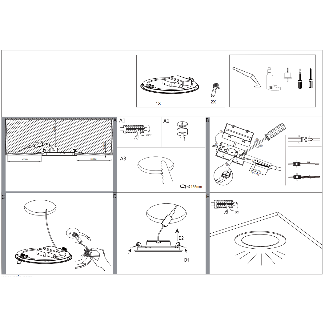 Fueva5 beépíthető LED lámpa, fekete színben.