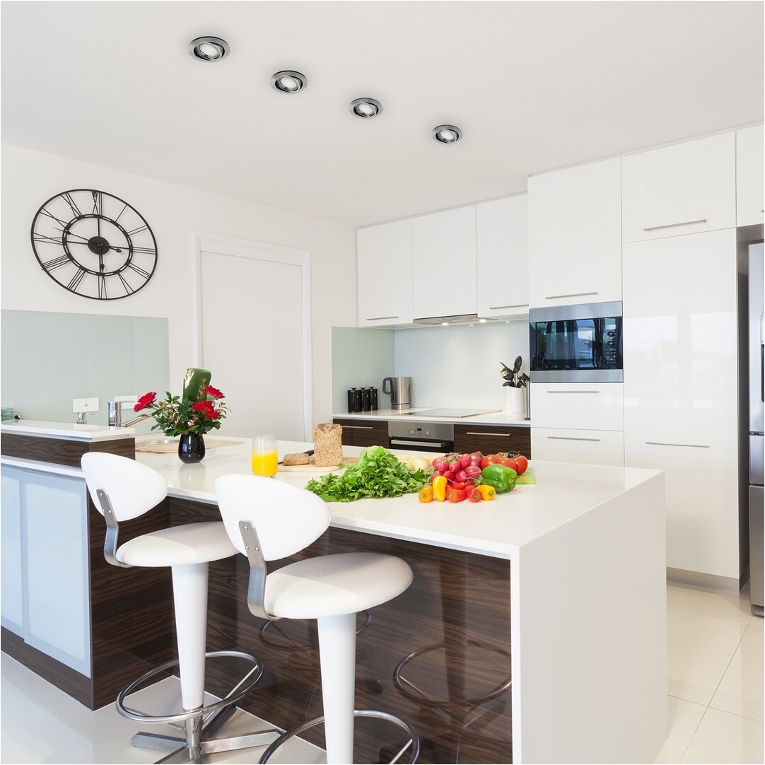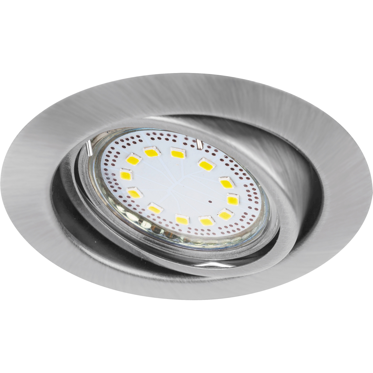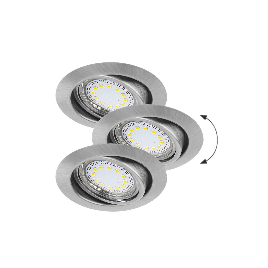 Gipszkarton álmennyezetbe, bútorlapba és polisztirol díszlécbe is beépíthető, modern megjelenésű 3 db-os billenthető LED spotlámpa szett, nikkel (szatin króm) színben. A spotok billenthetők, a fény iránya állítható. A 3x3W teljesítményű LED fényforrások 3x240 lumenes fényerőt biztosítanak, melegfehér (3000 Kelvin) színhőmérséklettel. A lámpatestek IP40-es védettséggel rendelkeznek, mely védelmet jelent nemcsak a por, hanem az apróbb szilárd tárgyak ellen is.