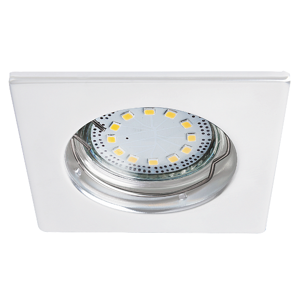 Lite beépíthető lámpa, fix, négyzet alakú, fehér színű. Energiatakarékos fényforrást tartalmaz.