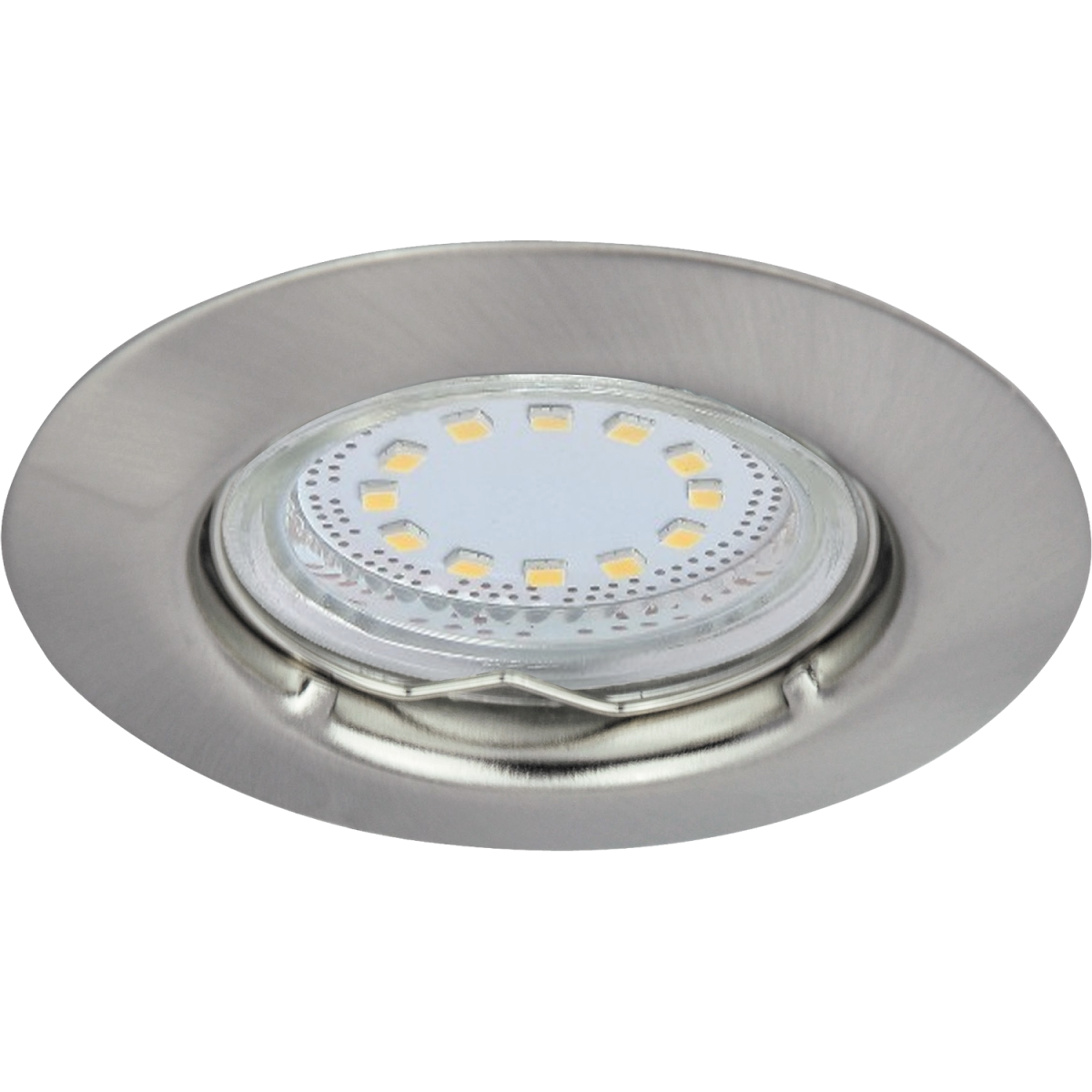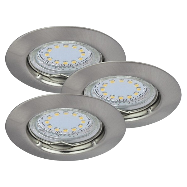 Gipszkarton álmennyezetbe, bútorlapba és polisztirol díszlécbe is beépíthető, modern megjelenésű 3 db-os LED spotlámpa szett, nikkel (szatin króm) színben. A spotok fix helyzetűek, egy állású megvilágítást biztosítanak. A 3x3W teljesítményű LED fényforrások 3x240 lumenes fényerőt biztosítanak, melegfehér (3000 Kelvin) színhőmérséklettel. A lámpa falba süllyesztett része IP40-es, a látható része pedig IP44-es védettséggel rendelkezik.