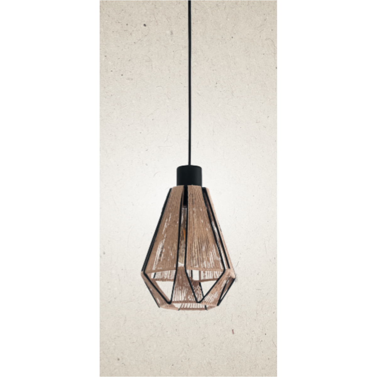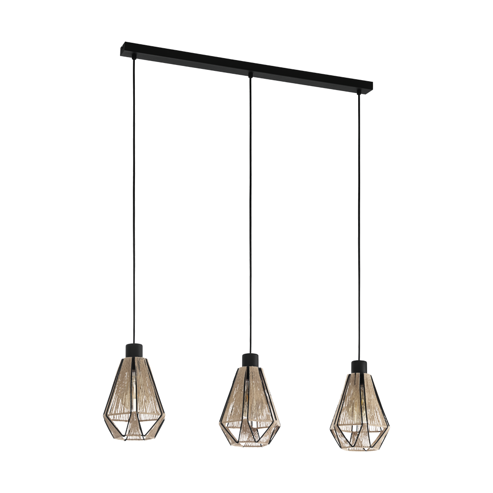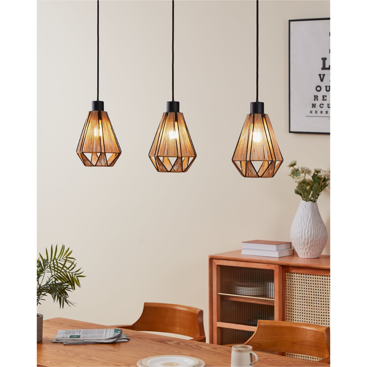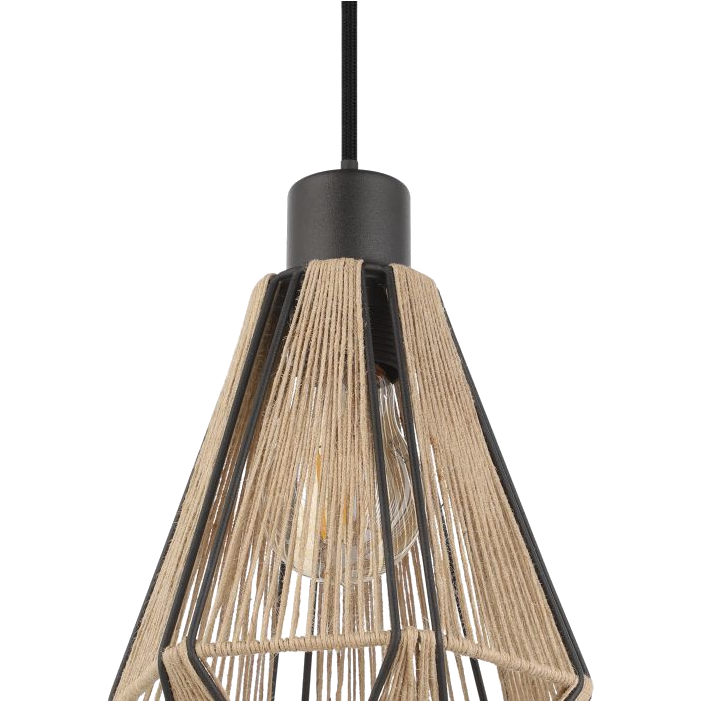 Függeszték fekete/natúr színben, E27 foglalattal; 3x maximum 40W teljesítményű fényforrással javasolt használni.