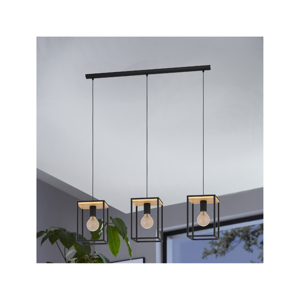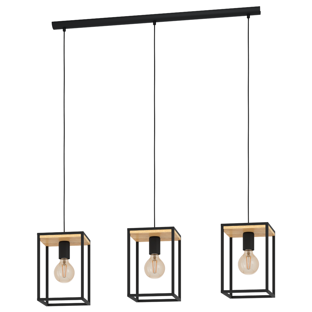 Függeszték E27 foglalattal, 88x18x110 cm méretben, fa/fekete színben; maximum 3x40W teljesítményű fényforrással javasolt használni.