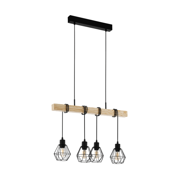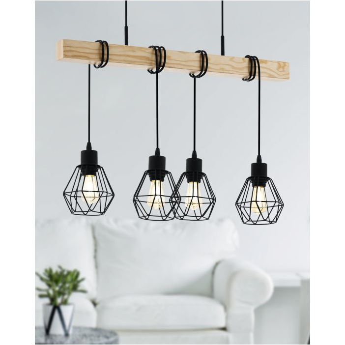 Townshend 5 függeszték fekete színben, 4 db E27-es foglalattal, melyek maximum 60W teljesítményű fényforrással üzemeltethetők.