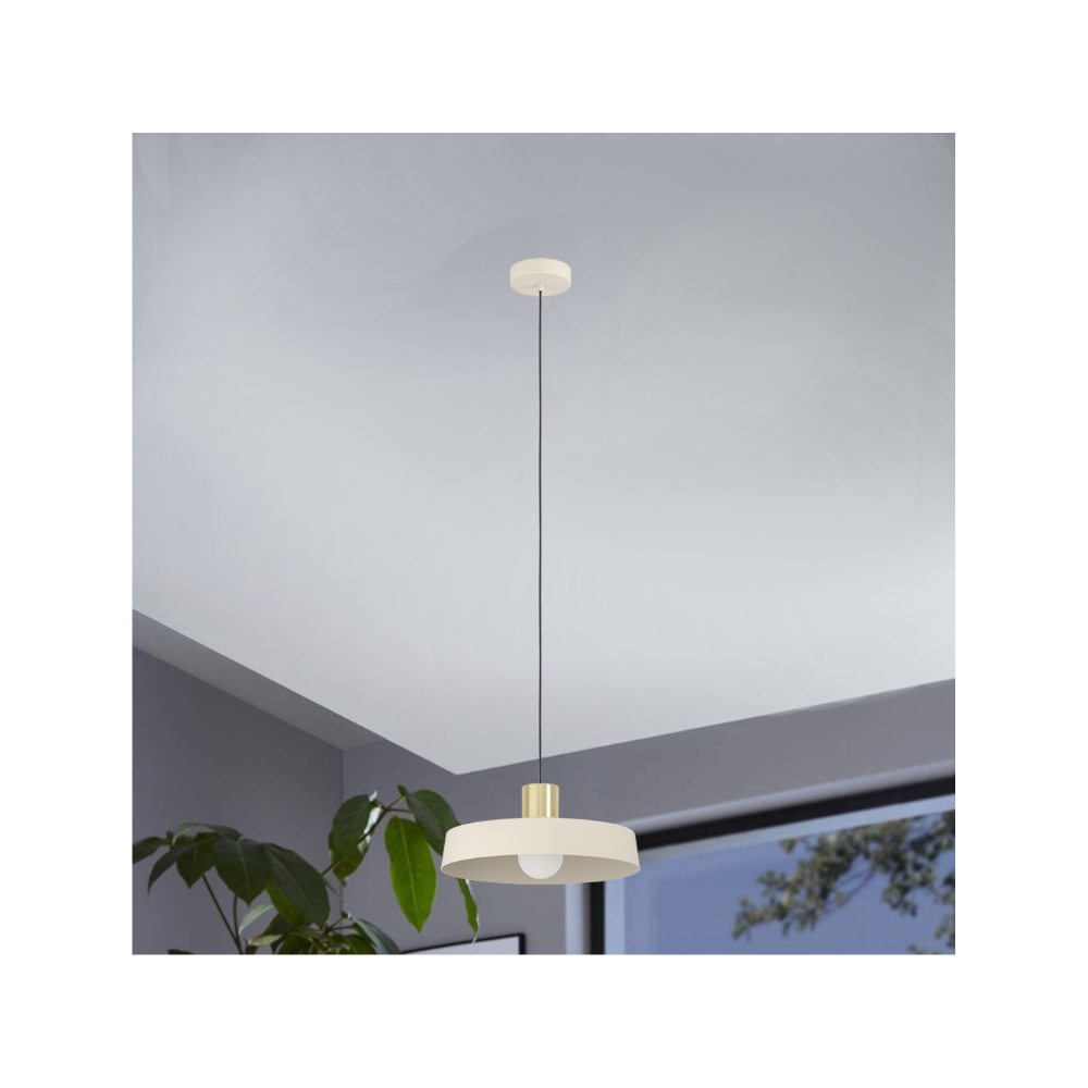 Függeszték E27 foglalattal, 36x110 cm méretben, homok/csiszolt réz színben; maximum 1x40W fényforrással javasolt használni.