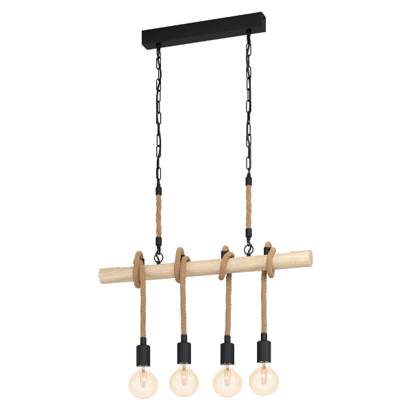Youngstown függeszték, fekete/fa színben. Foglalat típusa: E27, 4x40W. Fényforrás nélkül értékesítjük.