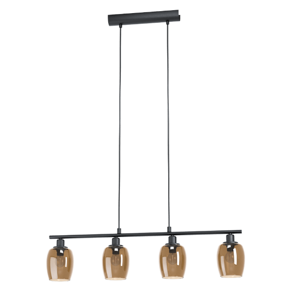 Zabalea függeszték, fekete/bronz színben, üveg búrával, Foglalat típusa: E14, 4x40W. Fényforrás nélkül értékesítjük.