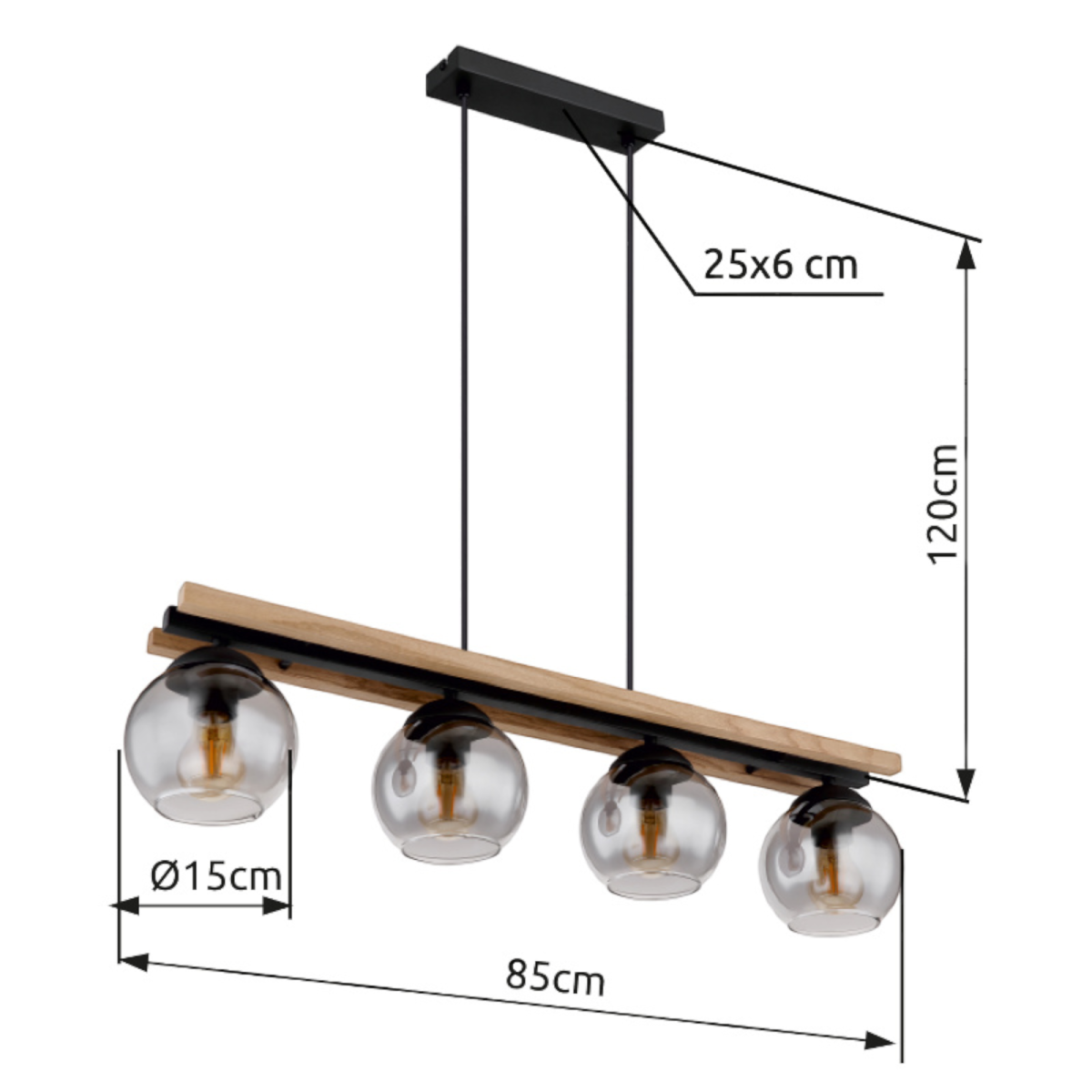A téglalap alakú vintage stílusú CONNI függőlámpa beragyogja otthonodat. Az egyenes gerenda és a gömbölyű búrák nosztalgikus hangulatot kölcsönöznek a lámpának. Fekete matt fémtestből és sötétbarna fából áll, a búrák pedig füstszínű üvegből készültek, amelyek meleg és kellemes fényt bocsátanak ki. Optimális megvilágítást biztosít, és harmonikusan illeszkedik a különböző méretű helyiségekbe. A CONNI függőlámpa otthonos légkört teremt, és ideális a nappaliba, étkezőbe vagy az előszobába. Fedezd fel a különleges, vintage hangulatú CONNI függőlámpát, és adj otthonodnak egy csipetnyi bájt.