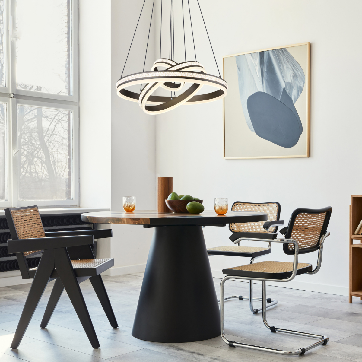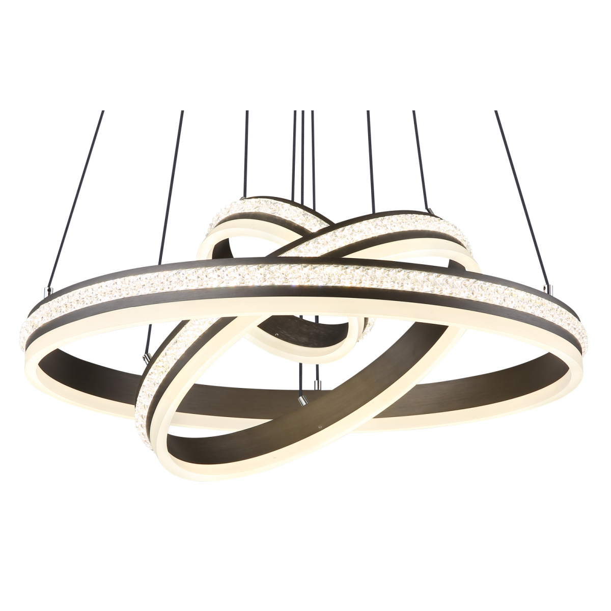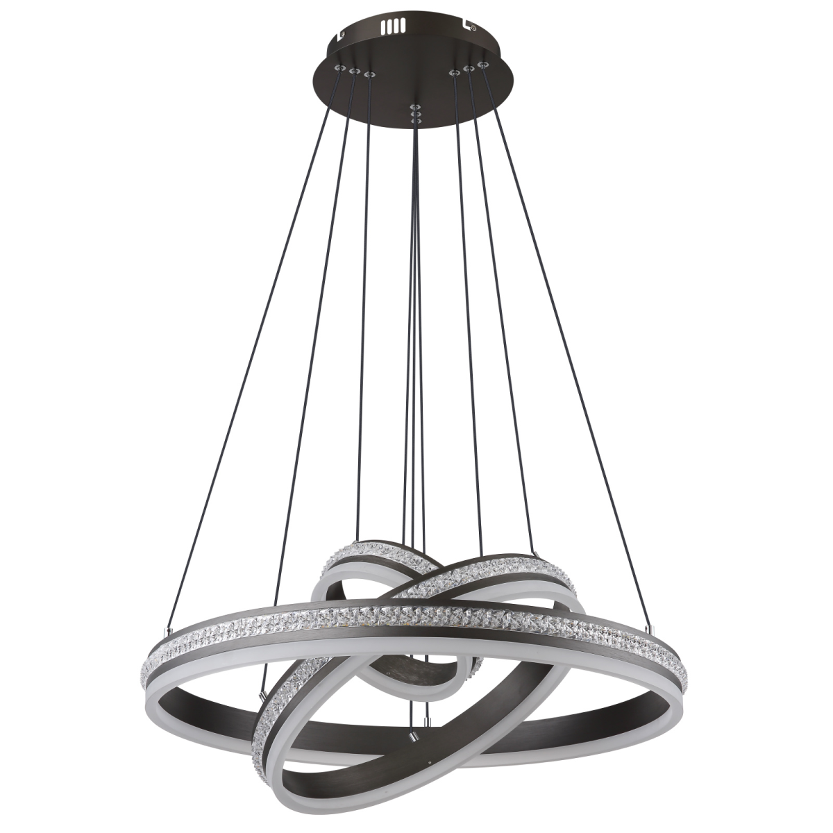Üdvözlünk a GROUNI függőlámpa világában, amely az elegancia és az innováció kombinációja! A csiszolt titánszínű fém és az átlátszó műanyag kristály fehér színű akrillal kombinálva lenyűgöző világítási hangulatot teremt. Ez a dimmelhető függőlámpa különböző lehetőségeket kínál, hogy a fali kapcsolón keresztül több fokozatban megváltoztathasd a fényt és a színeket. A memóriafunkciónak, a praktikus éjszakai világításnak és a magasság beállításának köszönhetően a GROUNI lámpatestet az egyéni igényeid szerint módosíthatod. Az elemekkel (2x AAA) ellátott távirányító kényelmes működtetést tesz lehetővé. A függeszték a 20 cm, 40 cm és 60 cm átmérőjű gyűrűivel nagyvonalú megvilágítást biztosít. A GROUNI energiatakarékos 70 W-os LED-et tartalmaz, amely lenyűgöző, 3510 lumen fényerővel rendelkezik. Merítsd otthonodat harmonikus fénybe, és élvezd a GROUNI függőlámpa teljes pompáját.