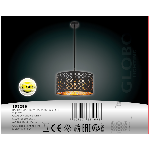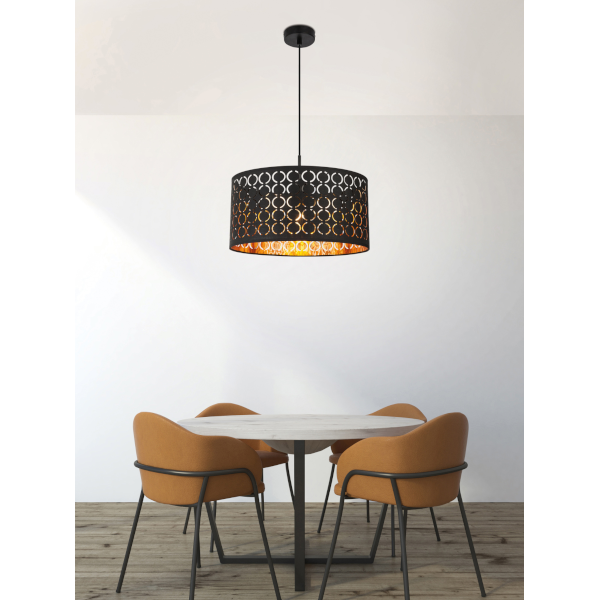 GLOBO HARALD FÜGGESZTÉK, 1XE27 60W FEKETE/ARANY-TEXTIL, 40X140CM IP20