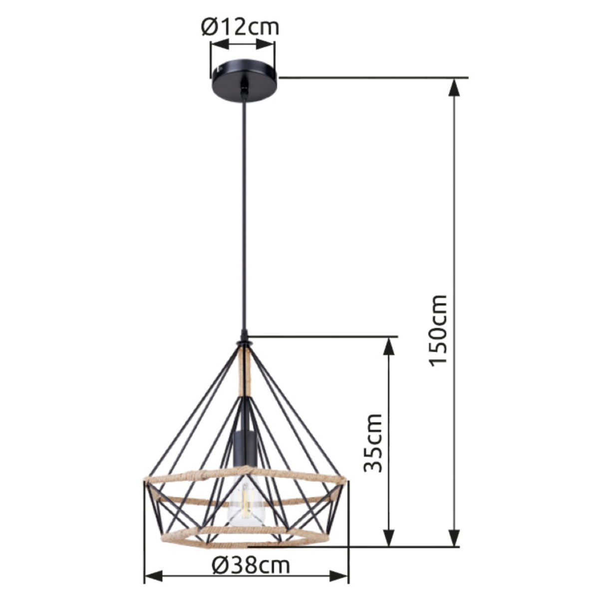 Az Ulleu vintage stílusban készült függeszték, melynek búrája fekete színű pálcákból és barna színű kenderkötélből készült. E27-es foglalattal rendelkezik, mely maximum 60W teljesítményű fényforrással üzemeltethető. Ez a lámpa biztosan felkelti vendégei figyelmét is.
