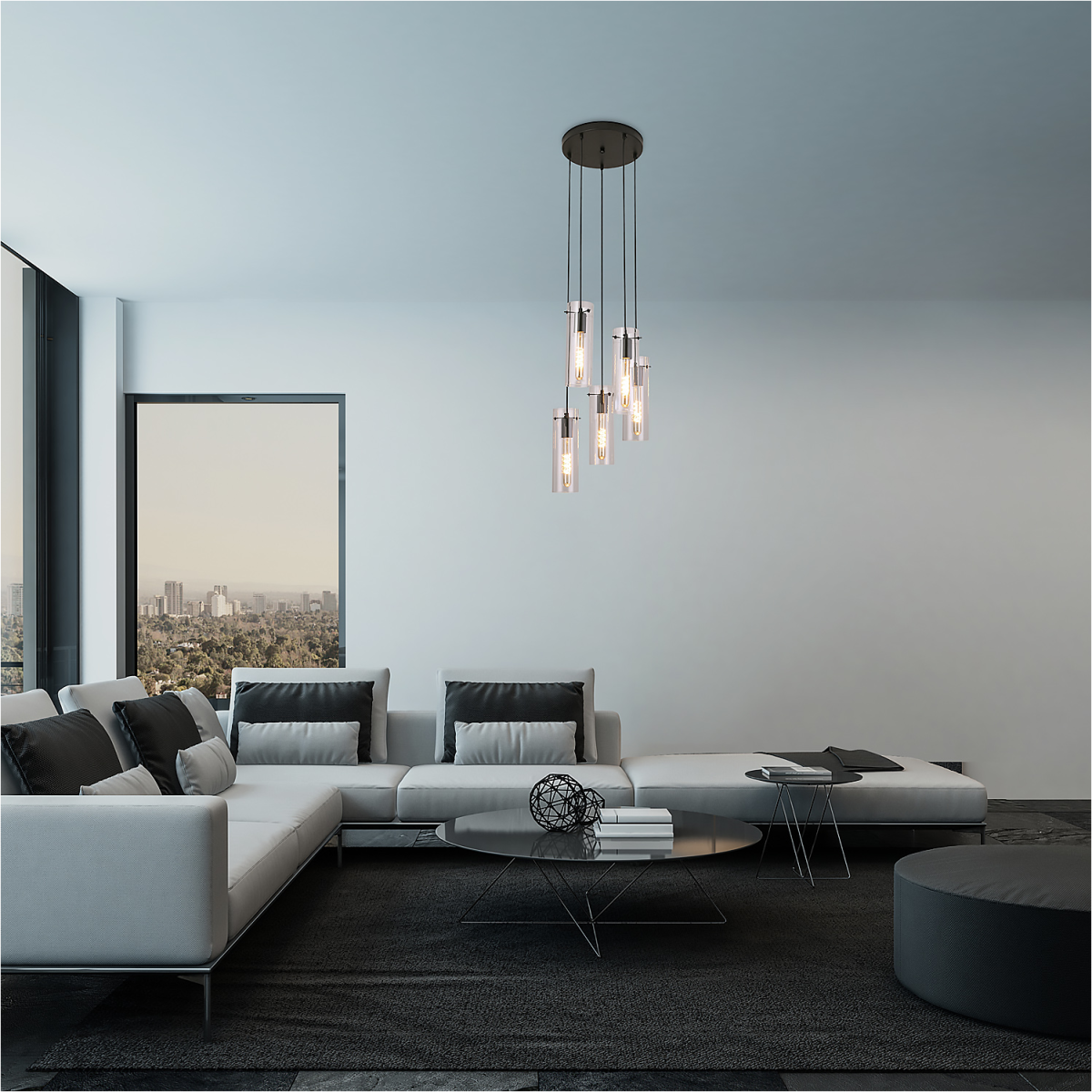 A modern stílus képviselői közé tartozó Acantha ötös függesztéket elsősorban a nappaliba, az étkezőbe vagy a konyhába ajánljuk. A fekete lámpafejekkel, dísztalppal és tartókábelekkel szerelt modell anyaga fém, henger alakú búrái pedig átlátszó üvegből készülnek. Az Acantha nagyméretű, kerek dísztalp segítségével rögzíthető a mennyezetre. A lámpa öt darab, egyenként legfeljebb 60 W teljesítményű fényforrással használható, a foglalatok típusa E27. Az egyes lámpafejek mind eltérő magasságban függnek, ami izgalmasabbá teszi a lámpa megjelenését. Mivel az üvegbúrák teljes egészében látni engedik a fényforrásokat, érdemes ezt a modellt a hagyományostól eltérő, különleges formájú izzókkal használni. Ízlésünktől és a felszerelés helyétől függően választhatunk hozzá meleg vagy természetes fehér fényű fényforrásokat. Az Acantha ötös függeszték méretei a következők: átmérője 350 mm, belógása 1200 mm, beépítési átmérője 300 mm. Ezt a modellt fényforrások nélkül szállítjuk.