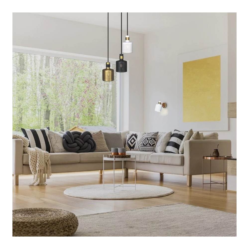 RÁBALUX ALBERTA FÉM FÜGGESZTÉK E27 3×MAX 9W TEXTIL KÁBEL, FEHÉR-FEKETE-ARANYSZÍN
