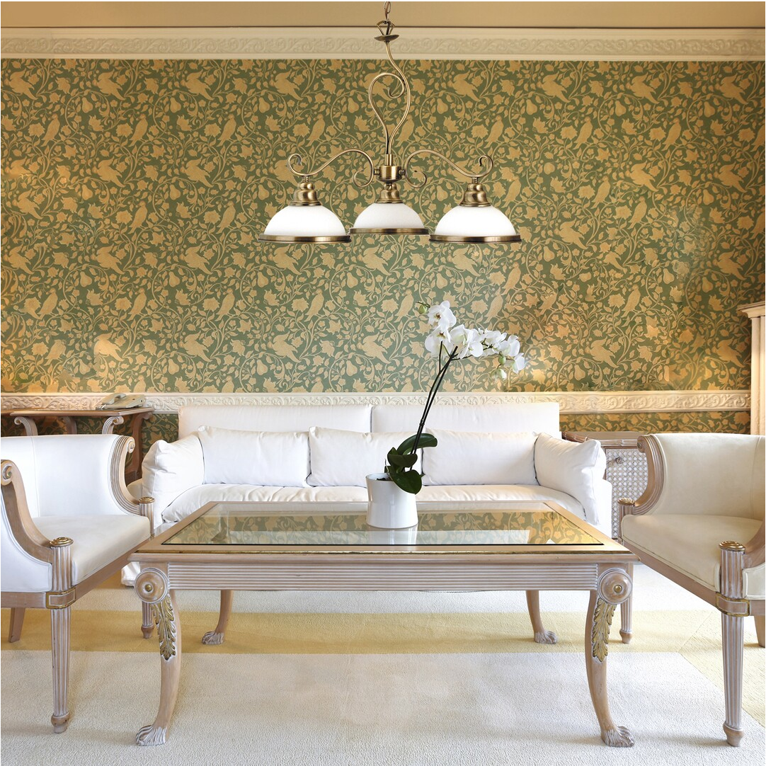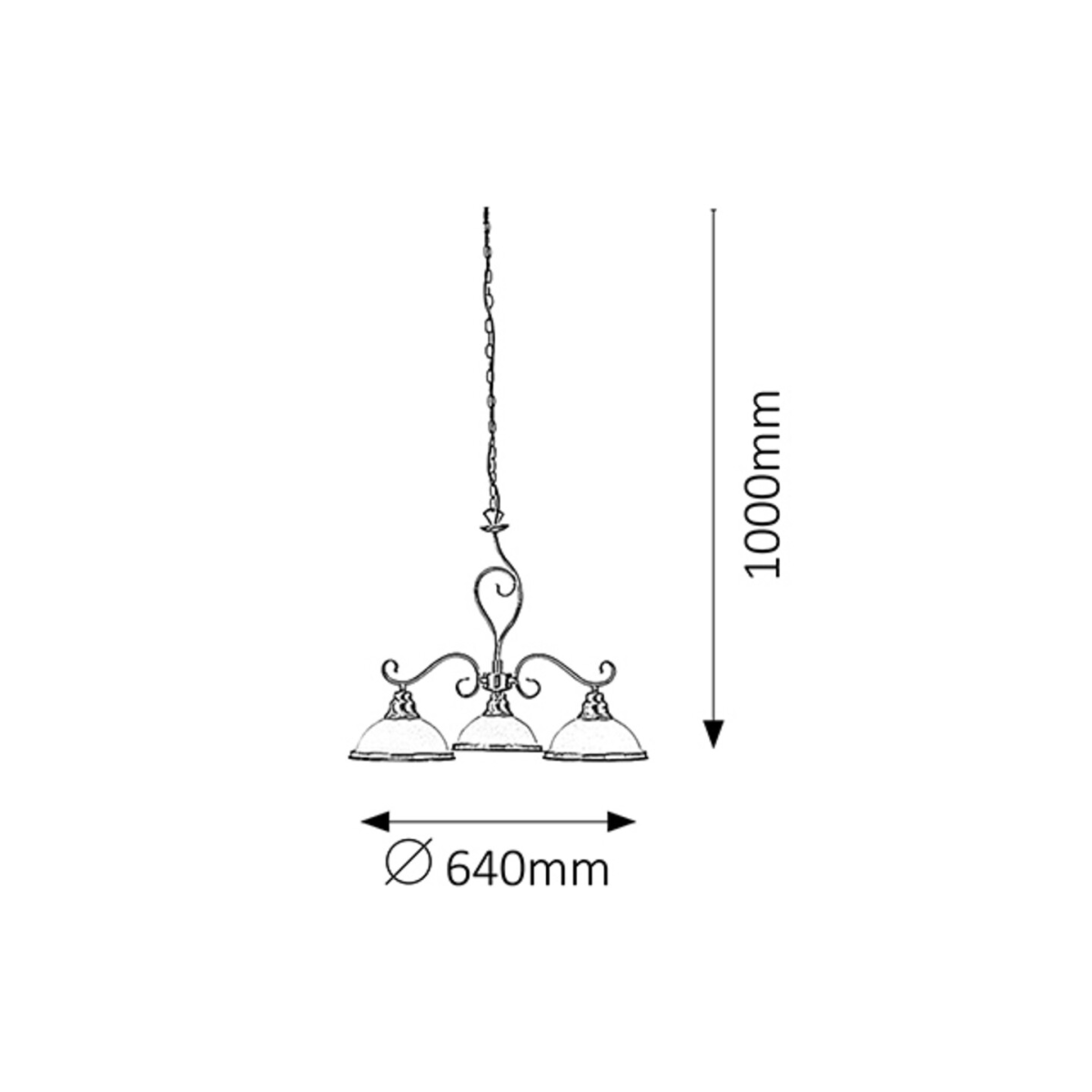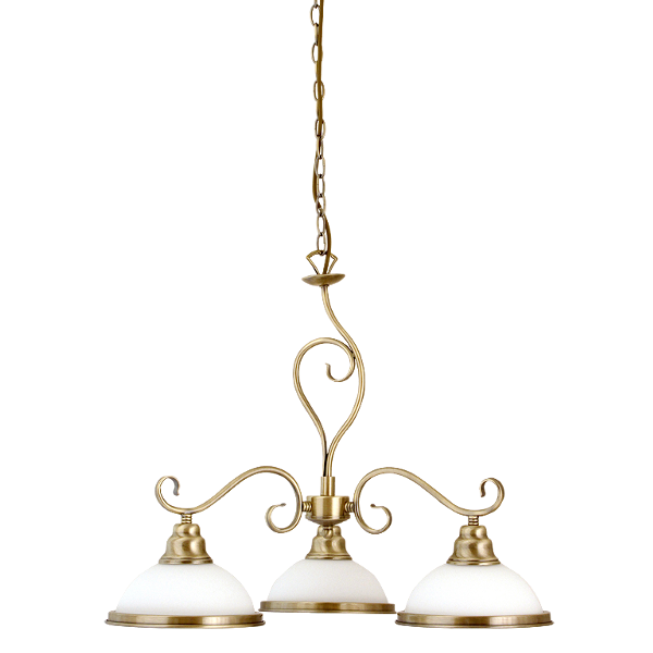 Klasszikus megjelenésű csillár 3 darab foglalattal. 64 cm széles, fix 100 cm lelógású, bronz színű fémből készített lámpatest és fehér színű üveg lámpabúrák. A lámpatest E27-es foglalatú, melyek 3 x maximum 60W teljesítményű fényforrással üzemeltethetők. A csillárt modern külső és praktikus kivitelezés jellemzi, így igen sokféle helyiségbe illik ez az izgalmas lámpa, modern vagy klasszikus enteriőrbe egyaránt.