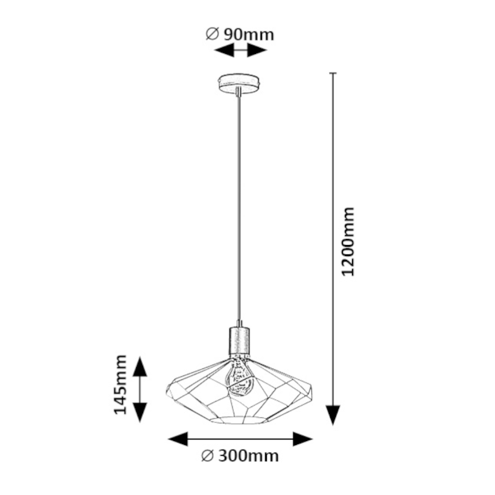 A Rábalux Fran függeszték elegáns, vintage stílusú megjelenést kínál, amely harmonikusan illeszkedik modern és klasszikus enteriőrökbe egyaránt. A teljes egészében fémből készült, matt fekete lámpatest gyémánt formát idéző, rácsos búrával rendelkezik, amely különleges vizuális hatást kelt, miközben a fényforrás szabadon látható marad. A kisméretű, kerek dísztalp segítségével könnyedén rögzítheted a mennyezetre.
