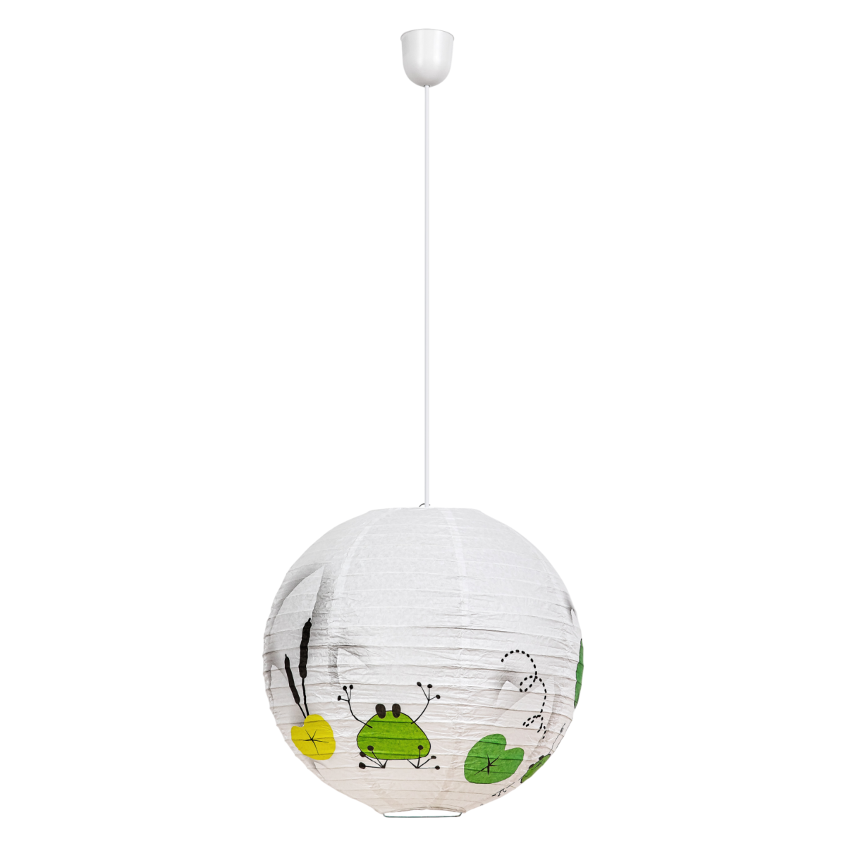 A Rábalux Froggo gyerek függeszték lámpa játékos, vidám hangulatot teremt a gyerekszobában. A gömbölyű formájú, fehér papírból készült ernyőt mókás békás-lufis minta díszíti, amely zöld és sárga színeivel frissességet és derűt sugároz. A függeszték egy darab, legfeljebb 40W teljesítményű E27-es fényforrással használható, amelyből melegfehér fényű izzóval különösen barátságos, otthonos légkört teremthetünk. A gyerekszoba függeszték a foglalatot és a fényforrást nem tartalmazza.