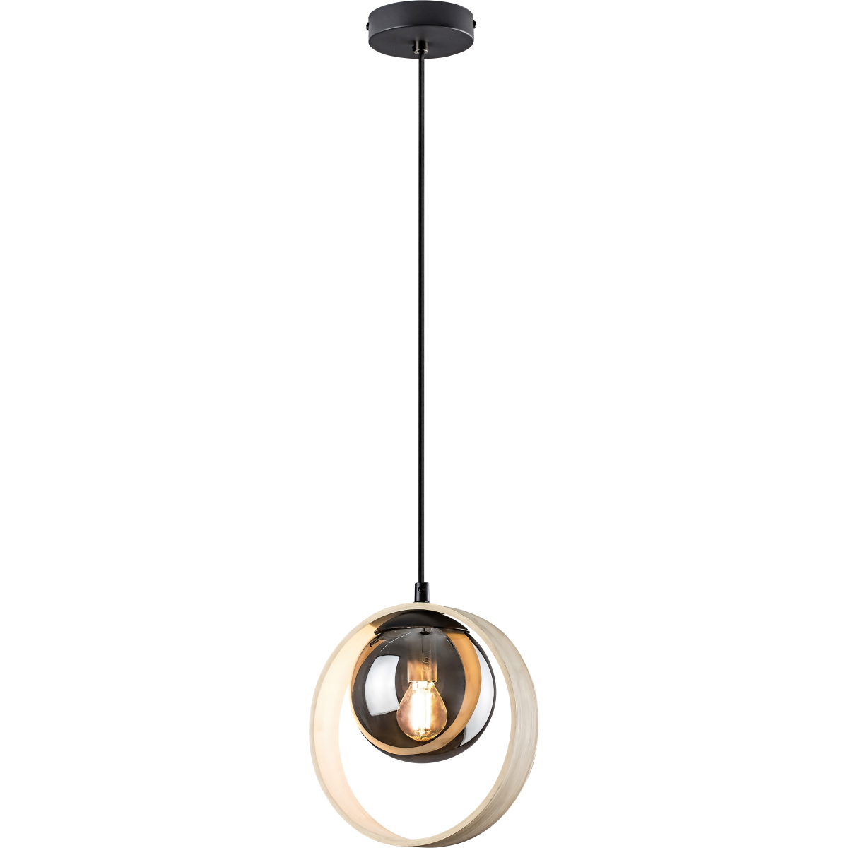 A modern stílusú Peyton egyes függeszték a nappali berendezésének egyszerű, ugyanakkor szemet gyönyörködtető darabja lehet. Visszafogott dizájnjának és színeinek köszönhetően számos enteriőrbe jól illeszkedik. A fémből és fából készült modellt gömb alakú színezett üvegbúra egészíti ki, és textilkábel, valamint kisméretű kerek dísztalp segítségével rögzíthető a mennyezetre. Az üvegbúra gömbjét jóval nagyobb méretű függőleges, bükkszínű fagyűrű veszi körbe. E két elem különleges kombinációja határozza meg a lámpa megjelenését. A Peyton egy darab legfeljebb 15 W teljesítményű fényforrással használható, a foglalat típusa E14. Ehhez a modellhez leginkább egy meleg fehér fényű fényforrás illik, amely segít otthonos, meghitt hangulatot varázsolni a szobába, és nagyszerűen kiegészíti a színezett üvegbúra és a természetes hatású fagyűrű kettősét. A lámpa méretei a következők: átmérője 215 mm, belógása 1200 mm, beépítési átmérője 100 mm. A Peyton egyes függesztéket fényforrás nélkül szállítjuk.