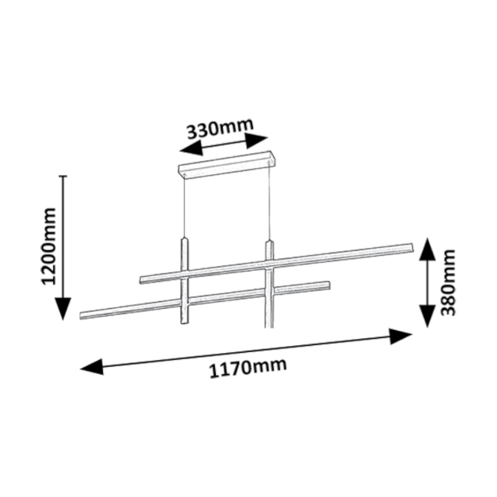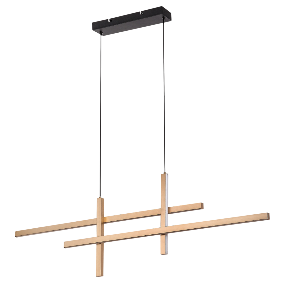 A Rábalux Severine függeszték látványos, geometrikus kialakításával és elegáns arany-fekete színkombinációjával különleges kiegészítője lehet bármely modern enteriőrnek. A lámpatestet négy szögletes rúd alkotja, amelyek egymásra merőlegesen helyezkednek el, így dinamikus, mégis harmonikus formát adnak. Fehér műanyag búrája a fényt egyenletesen oszlatja el, a meleg fehér fény pedig otthonos, barátságos légkört teremt.