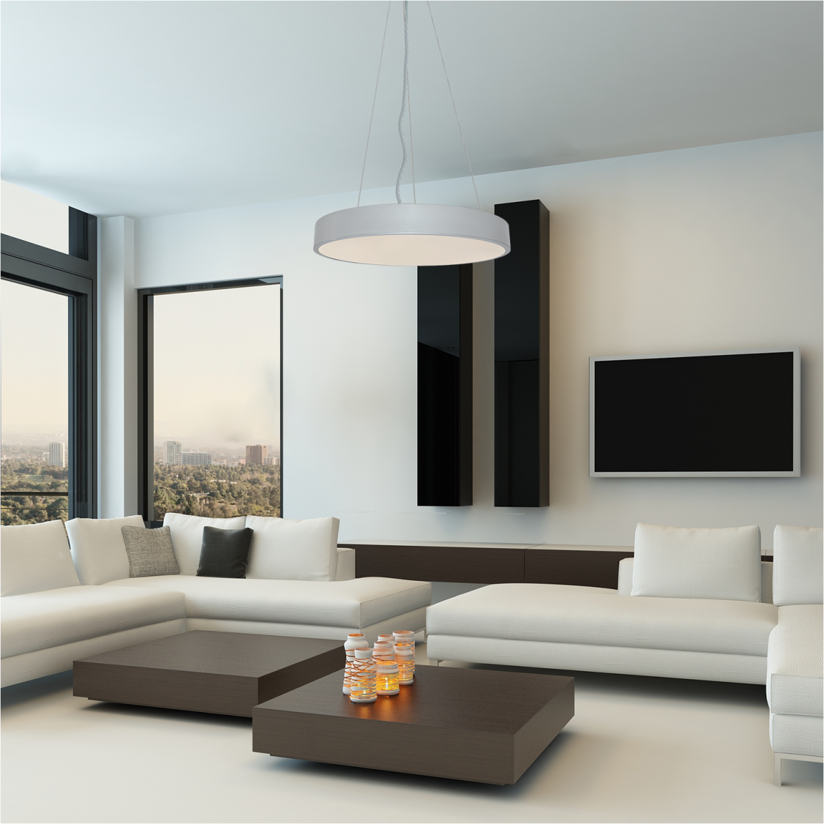 A nagyméretű, kerek Tesia mennyezeti lámpát azoknak ajánljuk, akik egyszerű, ugyanakkor hatékony és hosszú életű modellt keresnek modern nappalijukba vagy hálószobájukba. Ez a vékony kialakítású lámpa praktikus és helytakarékos, ugyanakkor éveken át megbízhatóan biztosítja a szoba világítását. A fémből készült ezüstszínű lámpát fehér műanyagbúra egészíti ki. A Tesia beépített LED fényforrással rendelkezik, amelynek a teljesítménye 36 W, fényereje búrával 2550 lumen, búra nélkül 2880 lumen.