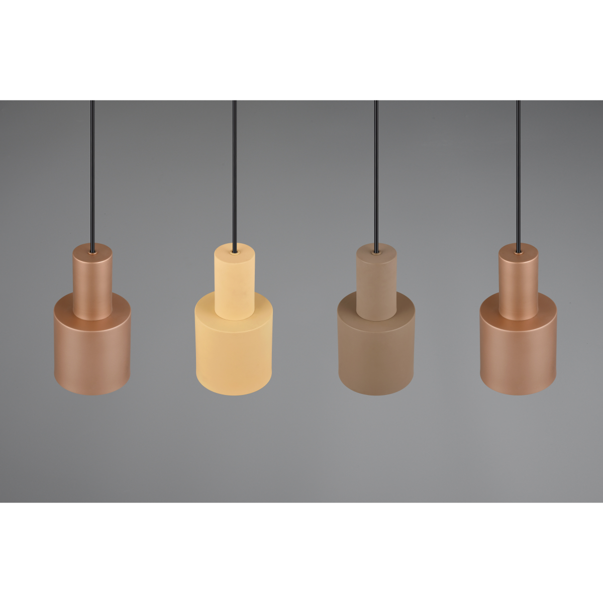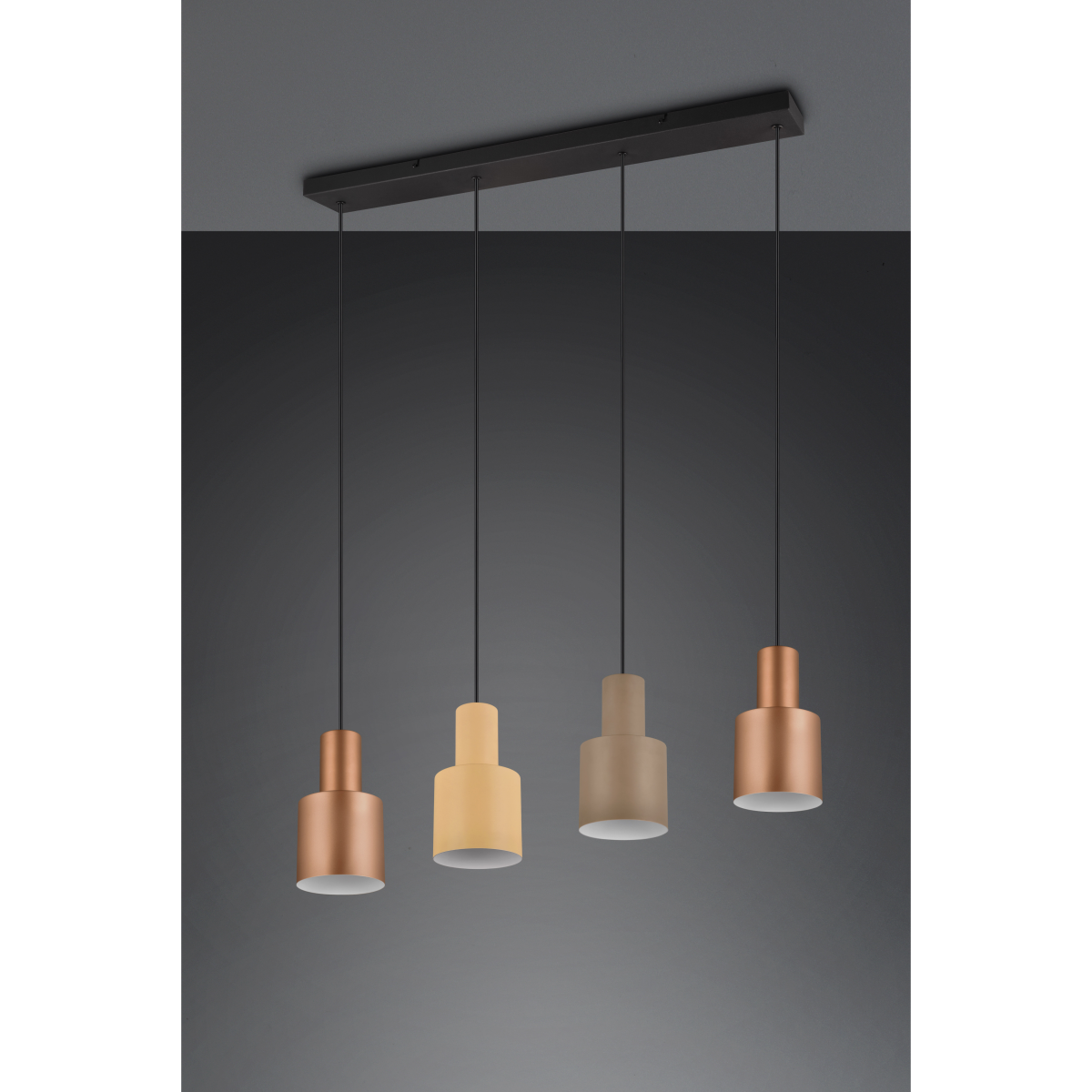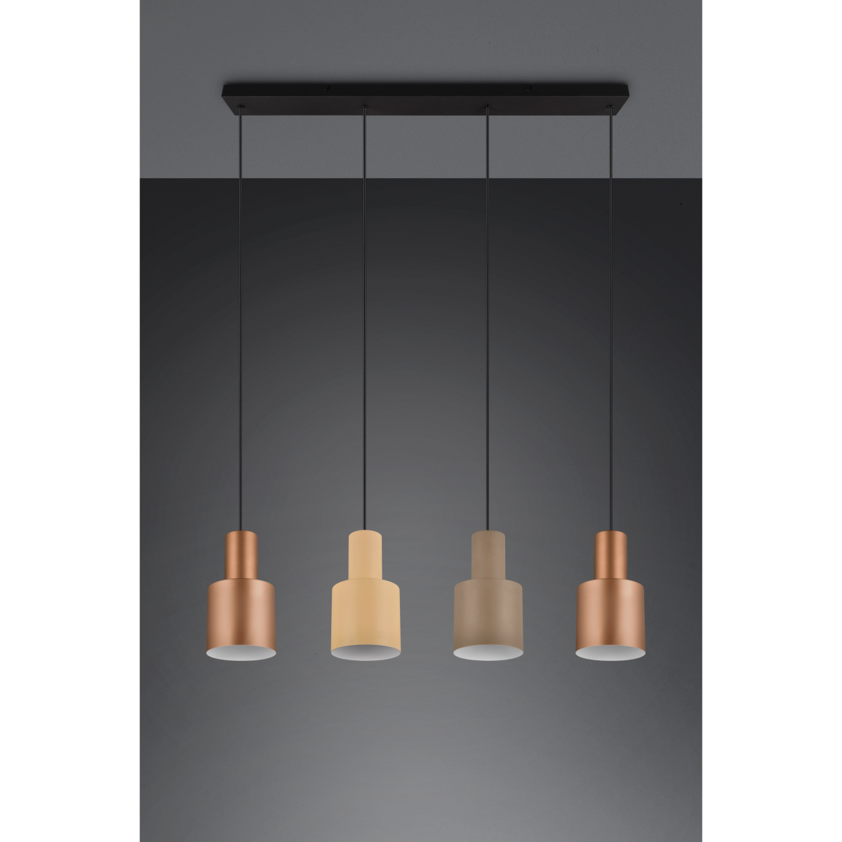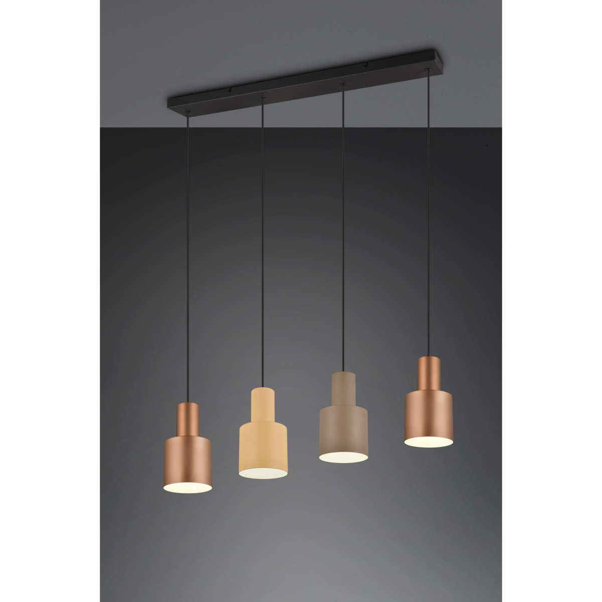 Az AGUDO négy izzós függőlámpa természetes színeinek és elegáns kialakításának köszönhetően a minimalista stílus trendet követi. Az étkező vagy nappali asztal fölött a lámpa meleg, természetes megjelenésével kellemes, bensőséges hangulatot kelt. A függőlámpa állítható. Maximális magasság 150 cm, szélessége 87 cm, mélysége 12 cm. 4 db E27-es foglalattal. Max 40W. A termék a fényforrást nem tartalmazza!