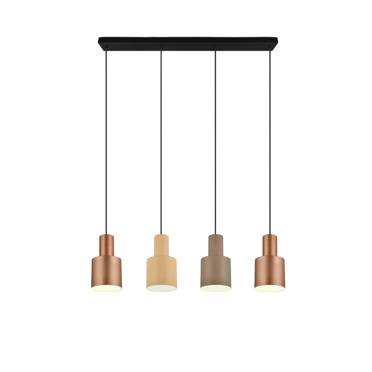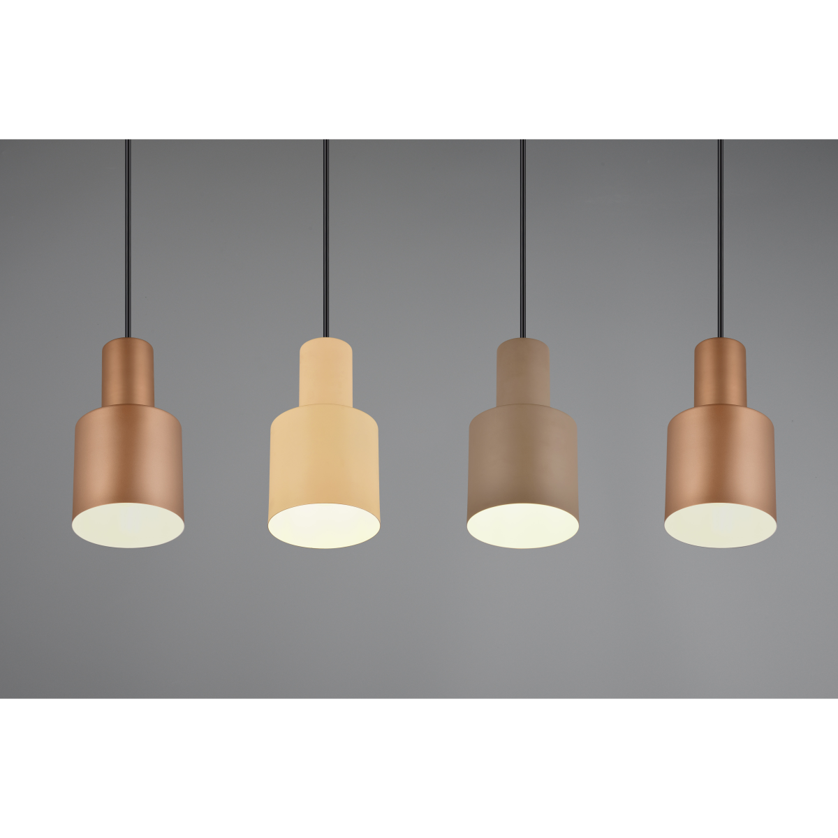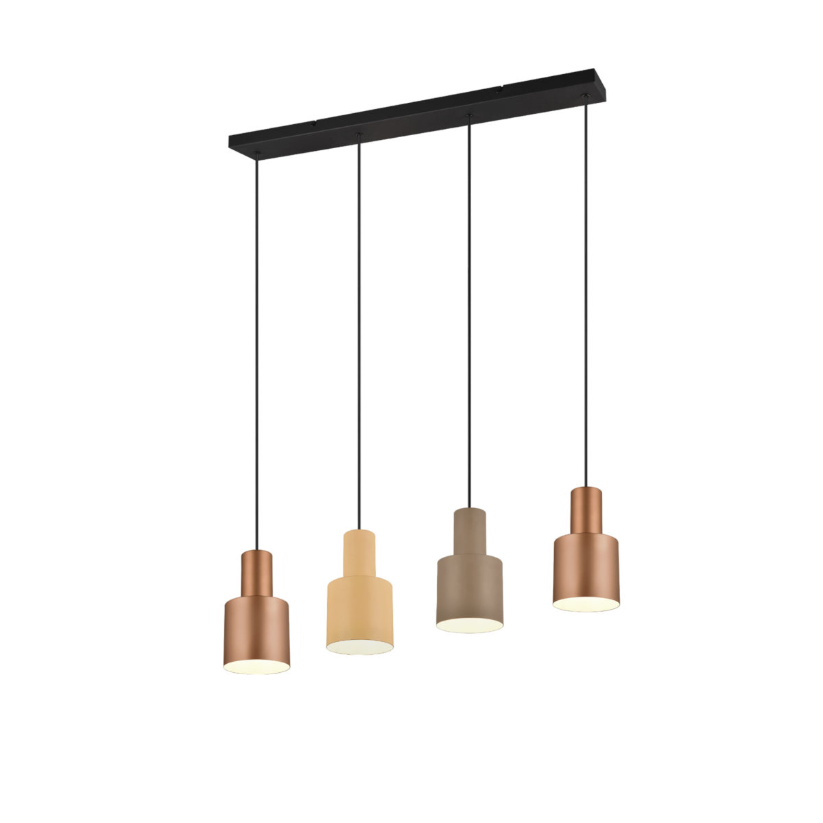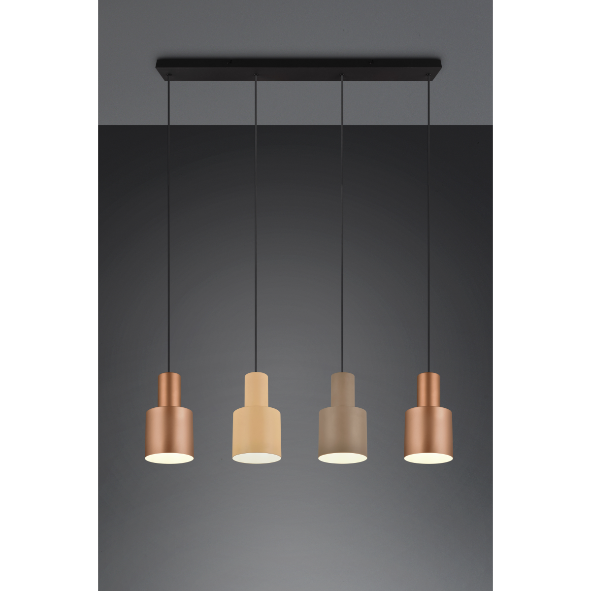 Az AGUDO négy izzós függőlámpa természetes színeinek és elegáns kialakításának köszönhetően a minimalista stílus trendet követi. Az étkező vagy nappali asztal fölött a lámpa meleg, természetes megjelenésével kellemes, bensőséges hangulatot kelt. A függőlámpa állítható. Maximális magasság 150 cm, szélessége 87 cm, mélysége 12 cm. 4 db E27-es foglalattal. Max 40W. A termék a fényforrást nem tartalmazza!